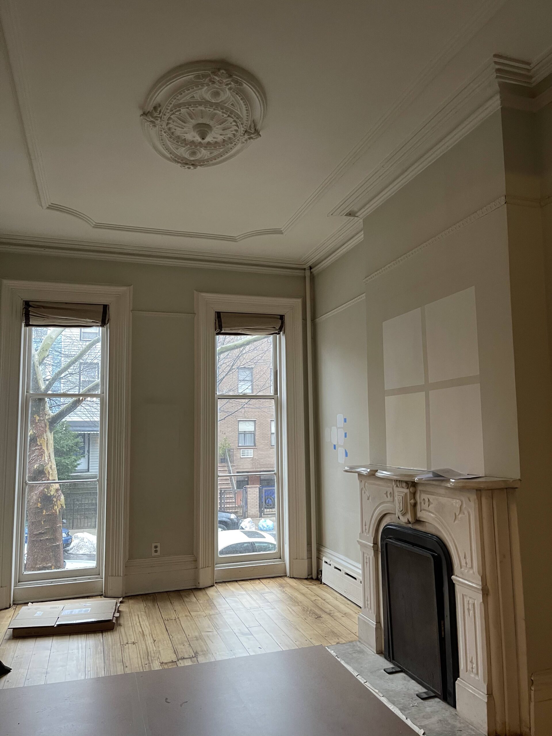 Erica Padgett, the founder of Decorum Design Build, has never performed surgery, but renovating Jenny O’Leary and Adam Bossy’s Brooklyn townhouse sure felt like it. “You had to be careful, like don’t jump too hard or else the 200-year-old plaster moldings will crack,” says Padgett. She admits the couple’s Greenpoint reno is the most challenging project she’s worked on to date—fortunately her clients were as easygoing as it gets. As an architect herself, O’Leary knew how labor-intensive it would be to save many of the mid-1800s home’s original details all while cutting into the walls to make way for new plumbing and electrical. So when Padgett showed up on day one, O’Leary did her contractor and longtime friend a solid by handing her a full set of drawings.