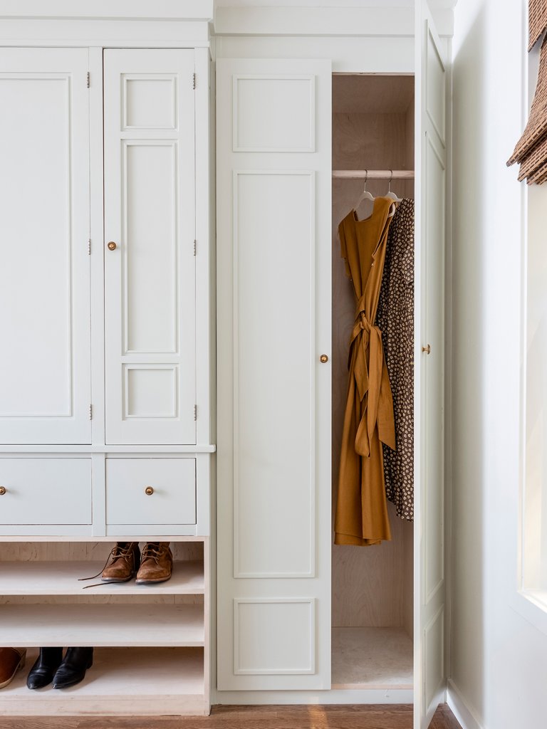 Denver-based interior designer Kate Bendewald has a thing for hidden storage. So when she came across a photo of a secret spice cabinet somewhere on the Internet, the idea was burned into her memory. “Once I see something, it gets embedded in my cerebral hard drive,” says Bendewald, whose total recall came in handy during the recent redesign of an 1880s bungalow kitchen. Her clients, Tracy Talbot and Meghan King, loved the idea as much as she did. “All we had to do was figure out how to build the dang thing,” says the designer.