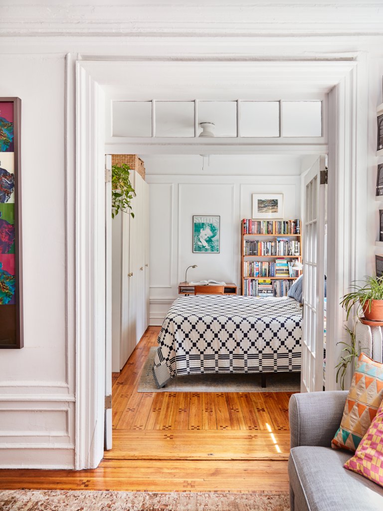 “Given the weight of the slabs, the idea at first seemed improbable, and we briefly considered switching to porcelain, but Bill had a eureka moment when he figured out a solution with track-and-steel bearings,” recalls Bendewald. “It was a renovation story miracle!” The hardy metal contraption allows the two 3-centimeter-thick stone fronts flanking the range to effortlessly glide behind the cooktop backsplash.