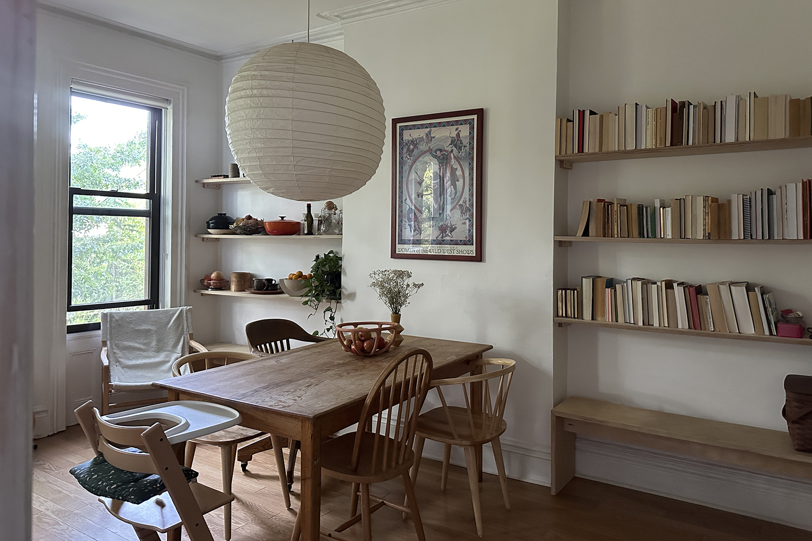 For the first two years that Aubrey Ament and Will Glaser were living in their Bedford-Stuyvesant, Brooklyn, brownstone, it was a “construction sandwich.” The couple, who run the design firm GLAM Studio, started revamping their garden level shortly after they moved in, with the goal of listing it as a short-term rental on Airbnb so they could secure some extra income and put it toward their mortgage. They treated the floor above that, the parlor, as their living room with the eventual goal of building out their dream kitchen. And until that could become a reality, the couple and their then-newborn son, Theo, holed up on the third floor, where they installed a micro-kitchen they bought at IKEA for $5,000, a dining area, and a shared bedroom. This setup made entertaining an intimate affair, to say the least. “We were cooking Christmas dinner, and my sister-in-law is sitting on the bed while the pork is roasting 8 feet away in the oven,” Ament recalls.