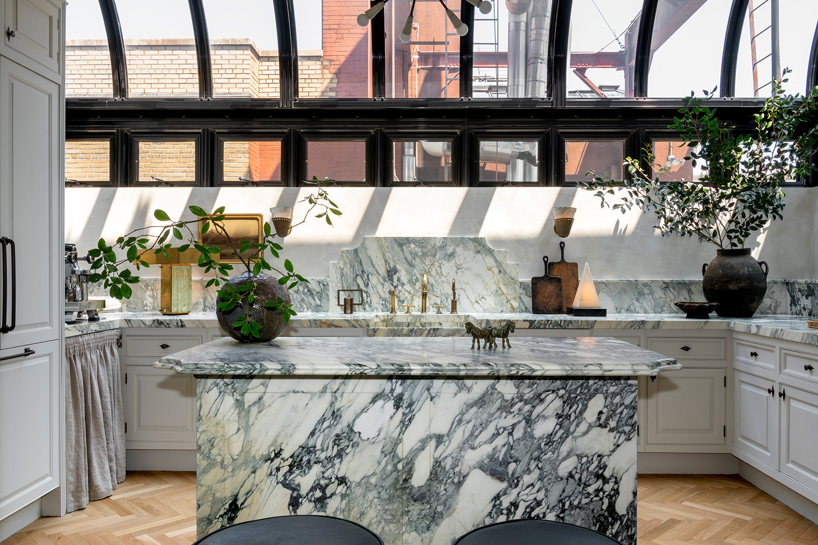 I love a nice marble. Actually, the particular marble that we went with [in the kitchen], my husband did not want—it was one of the only few things we’ve ever really disagreed on. I finally said to him, “Please let me do this. I’m in this room. I cook. I really believe in this marble.” I wanted the stone to contrast against the simplicity [of the space].