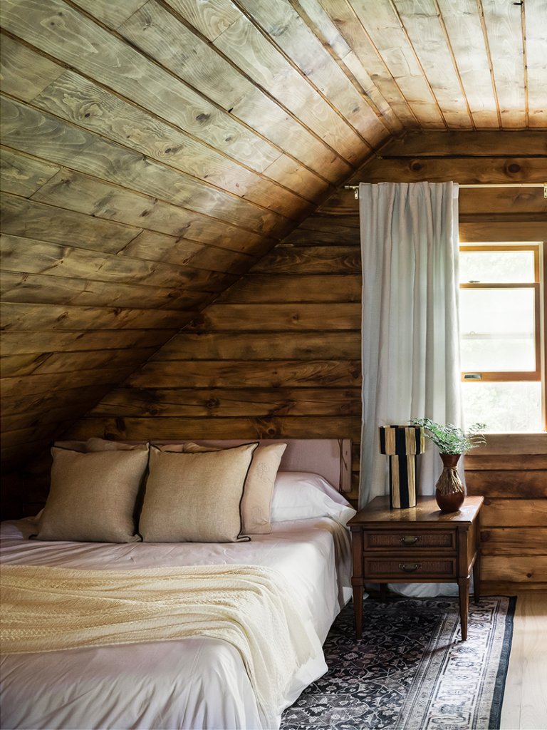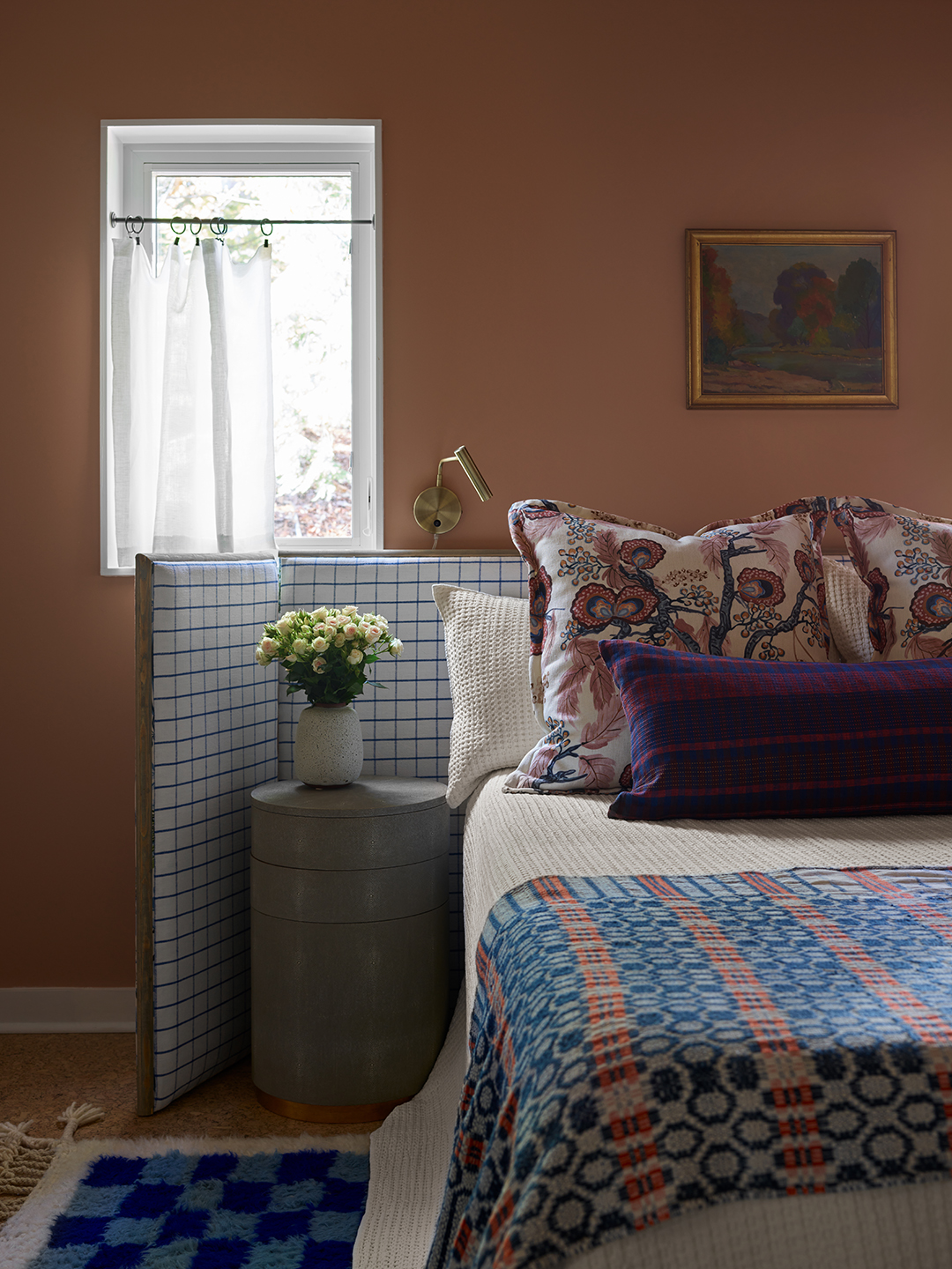 Davis was choosy in curating matching moments in the new wing, opting for details like the terrazzo and cork flooring that can be seen throughout both sections of the property. “It was important to me that we tie into the existing architecture of the home so we reflected a lot of the elements that were already there,” she says. “We matched the tongue-and-groove ceiling, dark green and black beams, extended jamb window and door details, and terrazzo and cork flooring that we had done in the first phase of the renovation.” The details come together to sweetly remind guests they’re sharing a much-loved home, despite their delightfully private digs.