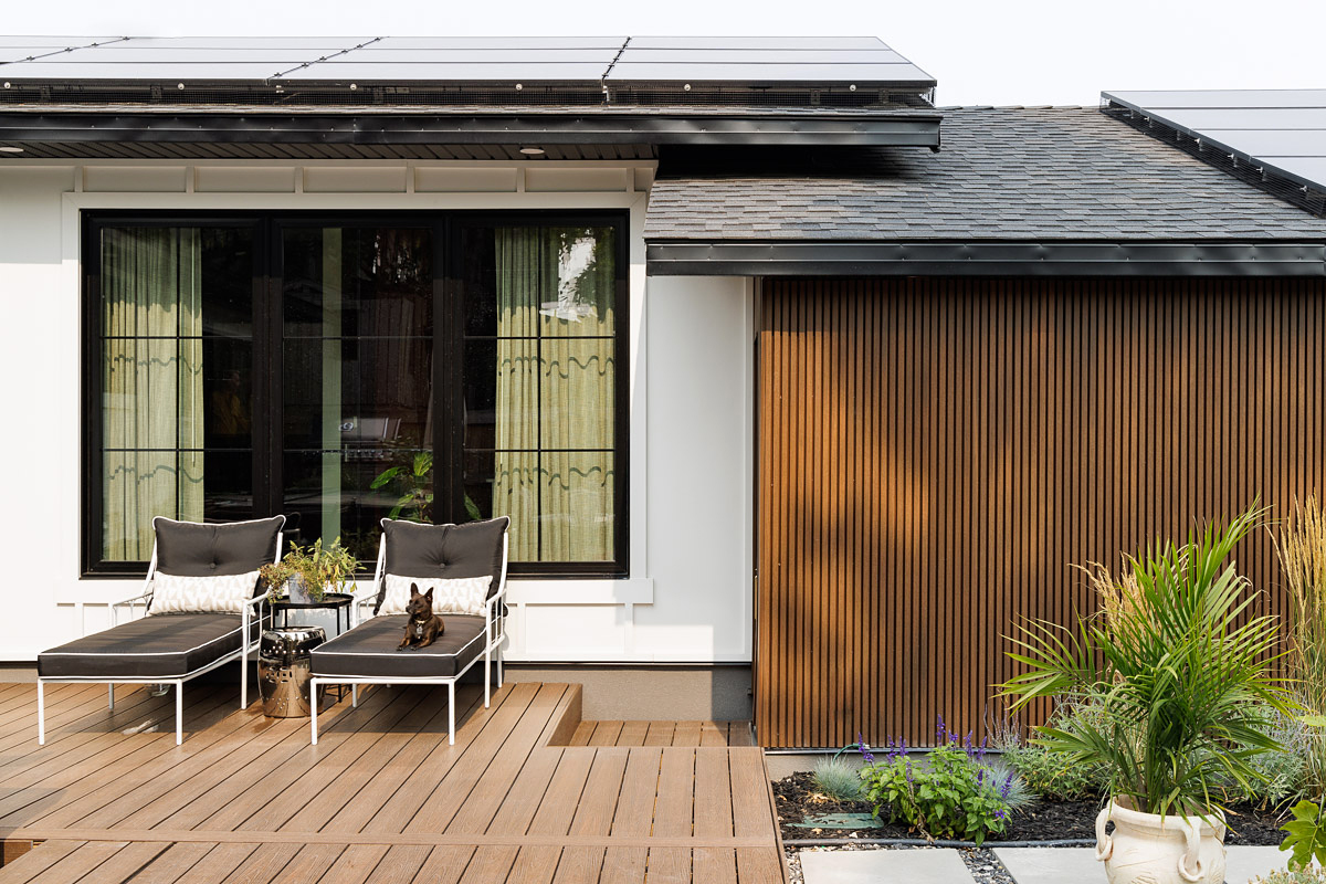 The recycled plastic panels wasn’t Velji’s only eco-conscious decision. The couple invested in solar panels and replaced all the windows and doors with black framed ones from Jeld-Wen that are triple-pane (read: energy efficient). “In our climate, we definitely need them,” he says.