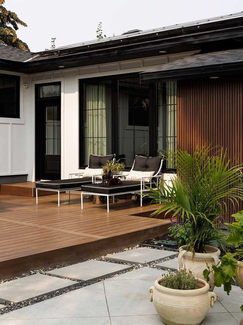 After nearly four months of searching, they found a bungalow in need of a full update in Kelvin Grove, just eight blocks away from their previous house of 13 years. The spacious front patio was naturally a huge draw, but the circa-1959 home’s drafty windows, old roof, and sparse backyard were begging for an overhaul. Still, “keeping the nostalgia was definitely a must,” says Velji. Ahead, the designer walks us through the major exterior makeover that got everyone on the block talking.