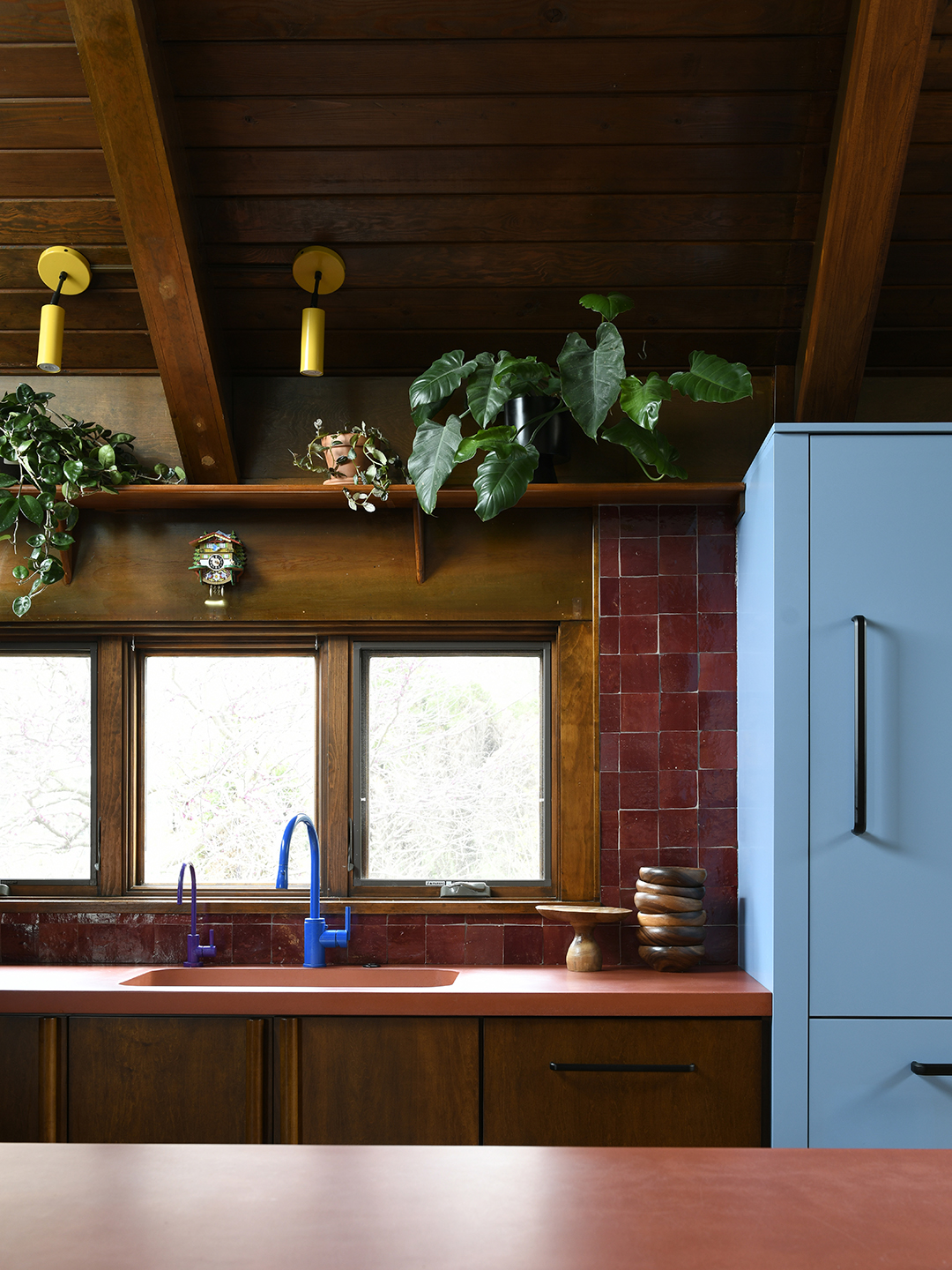 From the beginning, Popple’s clients requested a terra-cotta-hued countertop based on an inspiration image they’d seen of a kitchen with a reddish-orange surface. The designer called on a local father and son team, Outlaw Studios, who specialize in cement surfaces, templating it out and pouring the molds off-site so there are no messes on install day. The cost, surprisingly, came out to the same as a mid-range quartz.