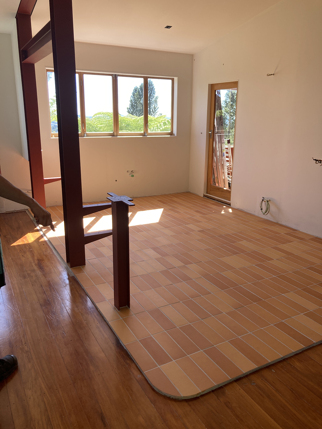 The home’s location in the western part of Auckland served as the major inspiration for both styles of cabinetry. Some of the cupboards are crafted out of oiled, recycled rimu, a wood native to New Zealand that is most commonly used for cutting and cheese boards. “One of the main reasons we chose rimu is its ability to match the original flooring of the house,” adds Jones. (It’s also incredibly strong and resistant to rot.) The powder-coated green steel drawers, on the other hand, are a nod to Titirangi’s lush landscape. Jones custom-designed everything with soft closing drawers. We wouldn’t want a slam to disturb those peaceful pasta-making sessions.
