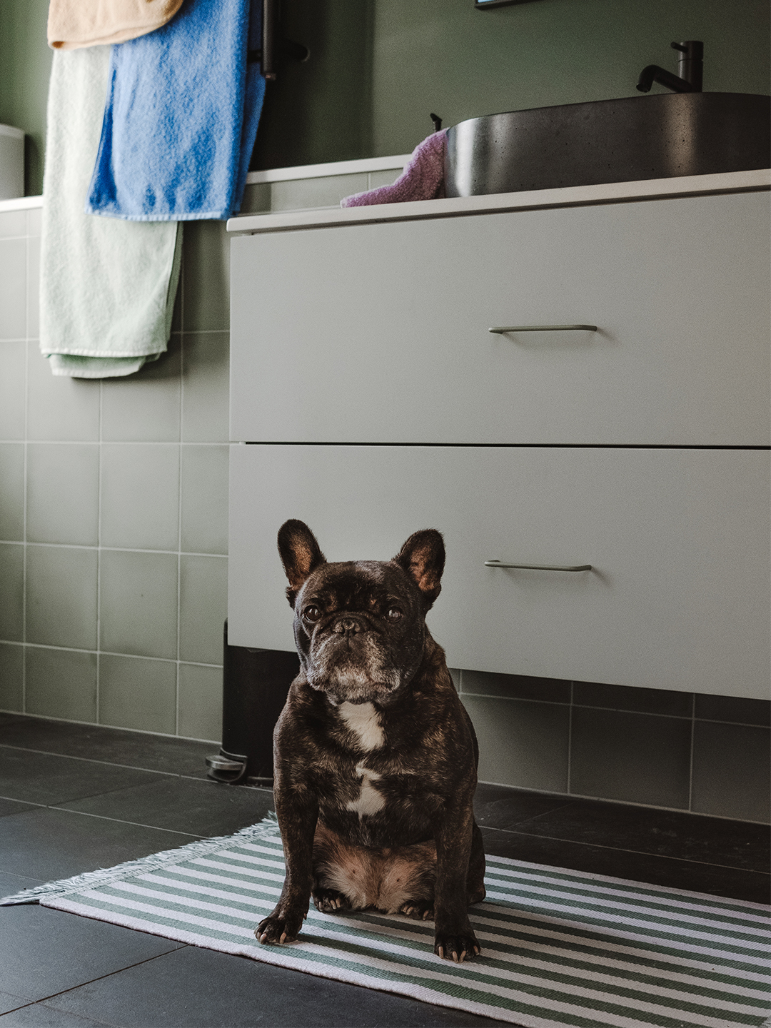 Jess: Living the new-parent life, it’s the little things, like the fact that Fabian and I can brush our teeth at the same time, that makes the space feel like a retreat. The bathroom is so cozy in the evenings when we’re putting Max down (she’s actually got a whole little skin-care routine).