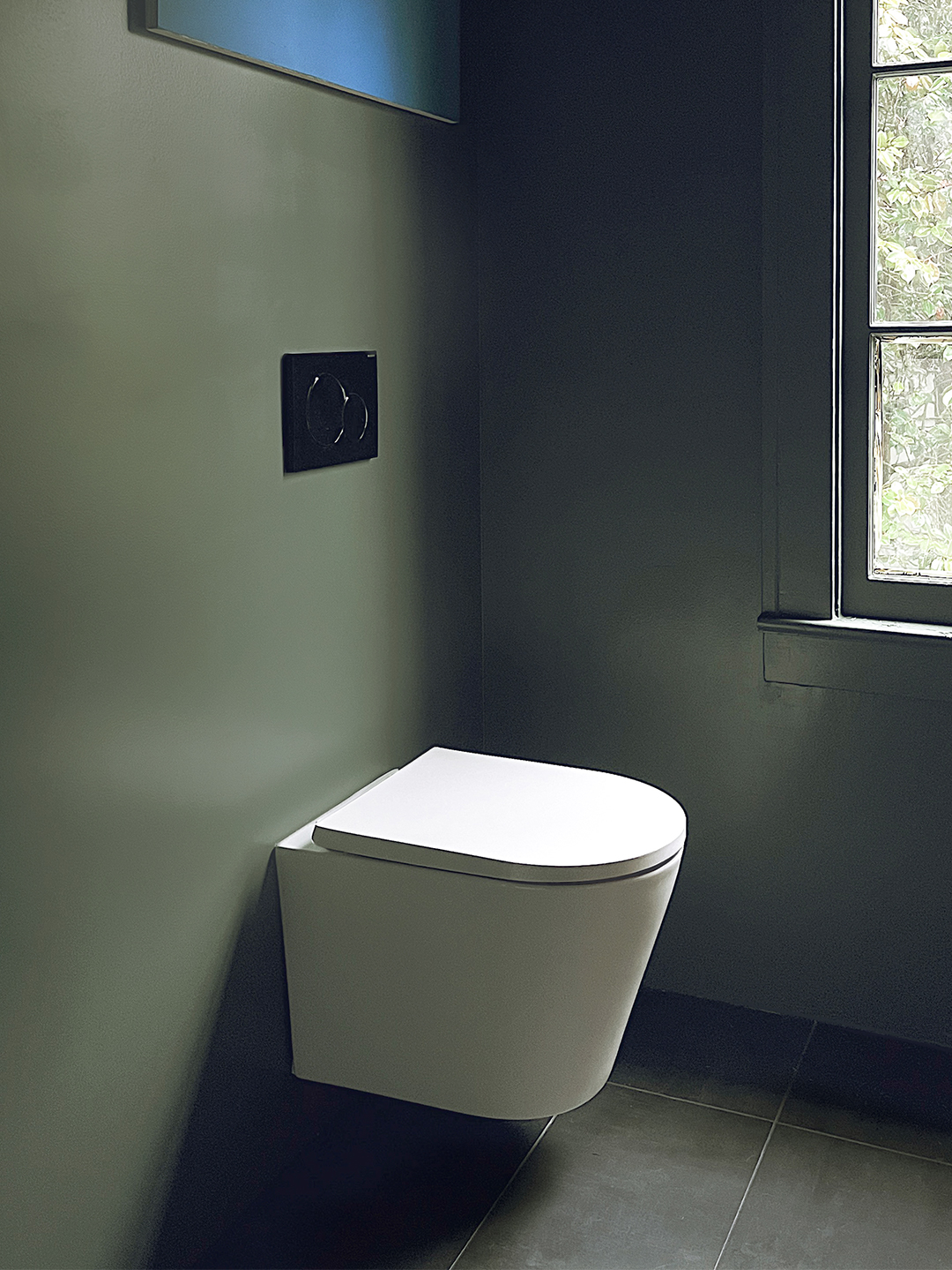 Fabian: We have dogs, so there is a lot of hair. Being able to sweep under the toilet was a practical goal. The wall-mounted fixture was only $200, but in order to install it, we had to extend the wall by 2 inches to allow for the pipes.