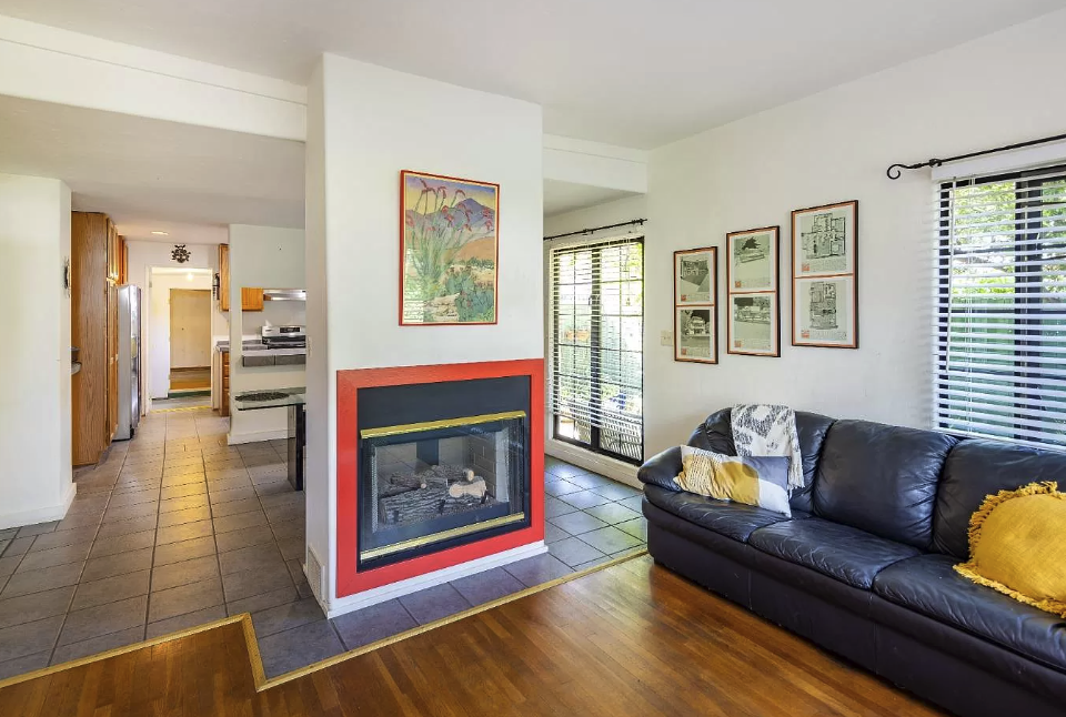 The standalone garage at the back of the property was probably not going to get a lot of use from its new owners, so it was given a modern update: The three-car space was turned into a one-bedroom ADU for future guests. Blazek wanted the design to feel distinctive but related to the main house, like a sibling off doing its own thing. The best place to make that clear was with a dynamic kitchen backsplash.
