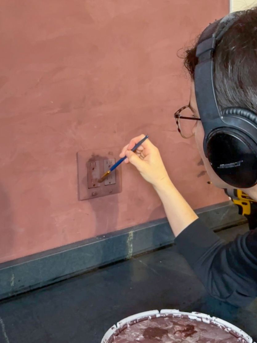“I didn’t really want people to be staring at the outlets; I wanted them to look at the marble or the lighting,” Bruner says, revealing her thought process. “So I originally thought I would do exactly what I did in other rooms: When I don’t want something to stick out, I camouflage it by making it blend into whatever surface it is.” She’d seen others on social media paint right over their outlets, so she assumed she was in the clear. But when Bruner let her Instagram followers know what she’d done, she got a string of DMs pointing out that it was actually a safety hazard. If any bits of Roman Clay chipped off and got stuck inside the ports, it could spark a fire. She pivoted right away.
