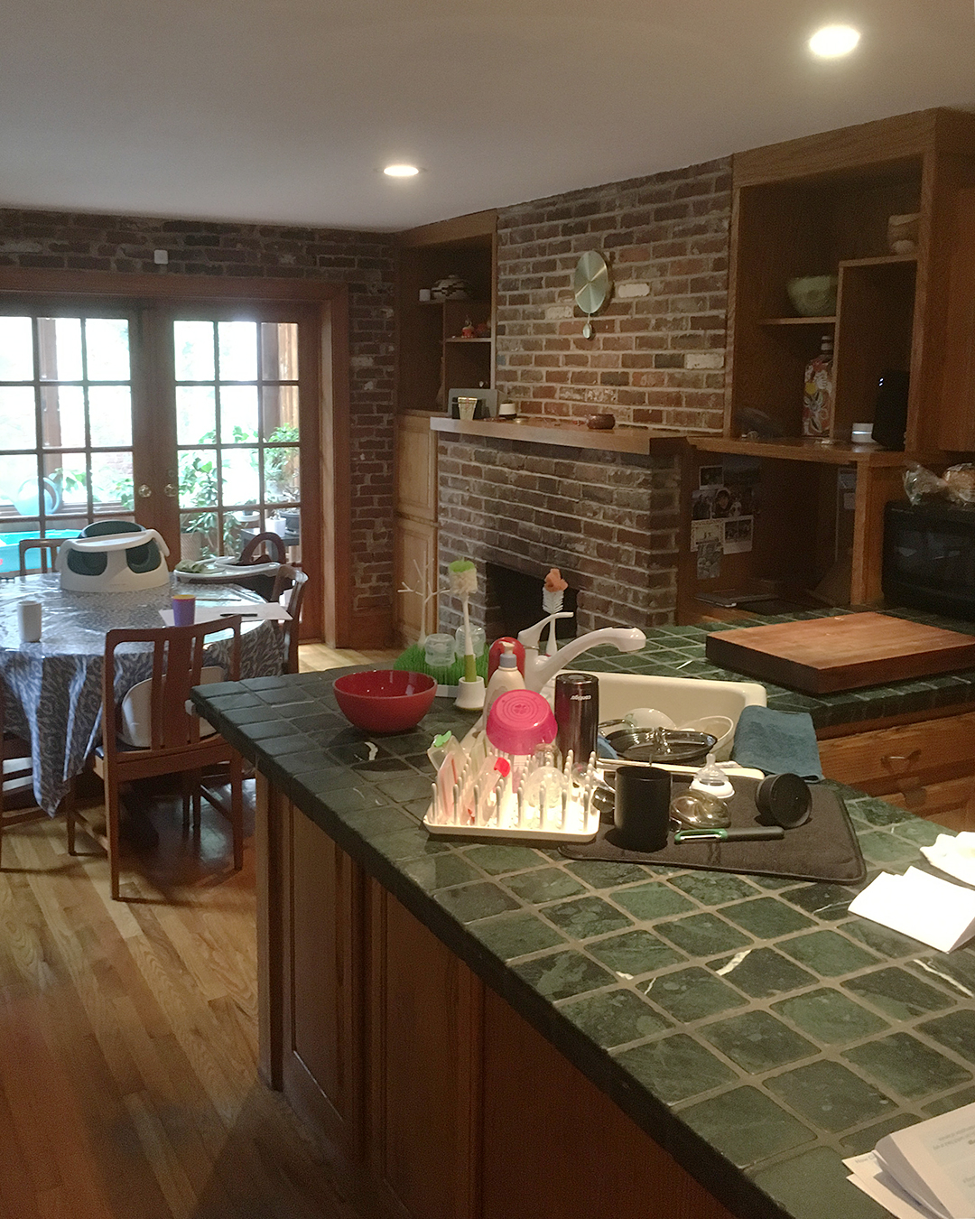 Because staring at a blank wall is no fun when you’re handwashing dishes, the clients came up with the idea to hang a mirror in front of the sink. “It’s a great way to bounce around light,” Kaminski says. “And you can look over your shoulder and see people seated at the table.”