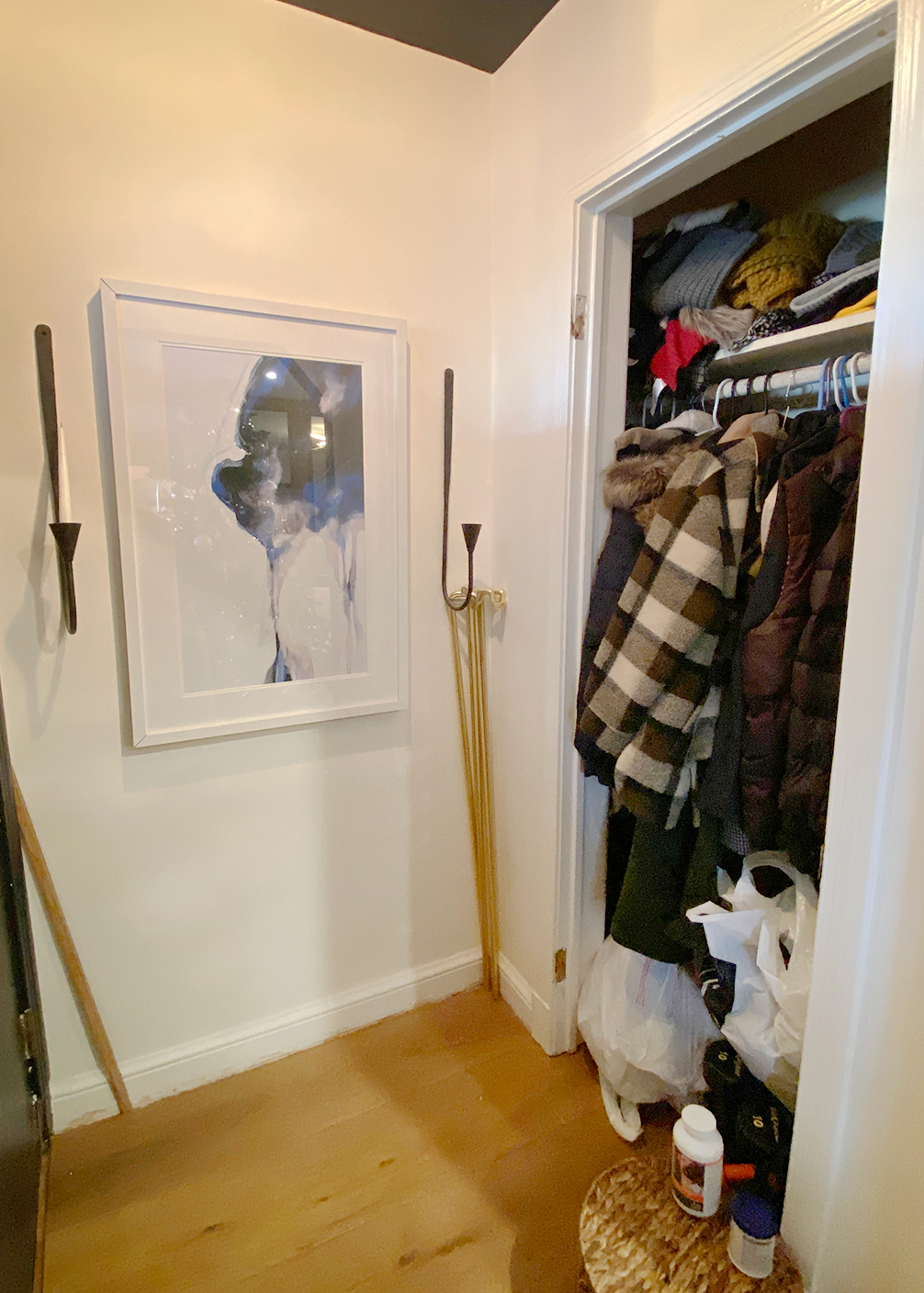 Turning the heavily trafficked area into somewhere pleasant required not just more storage but a design that blended in with the rest of her thoughtfully curated home. Ahead, Rashida walks us through the project—including how she eked out room for the couple’s two furry friends.