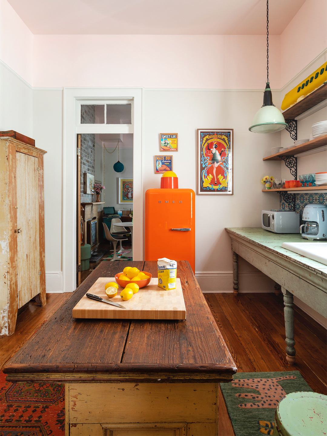 Braunschweig also has a soft spot for newer Smeg refrigerators, even the ones that are bright orange. She found the retro-looking piece, pictured above, through an appliance distributor’s eBay page for $1,400—a great save compared to the typical $2,000 price tag.