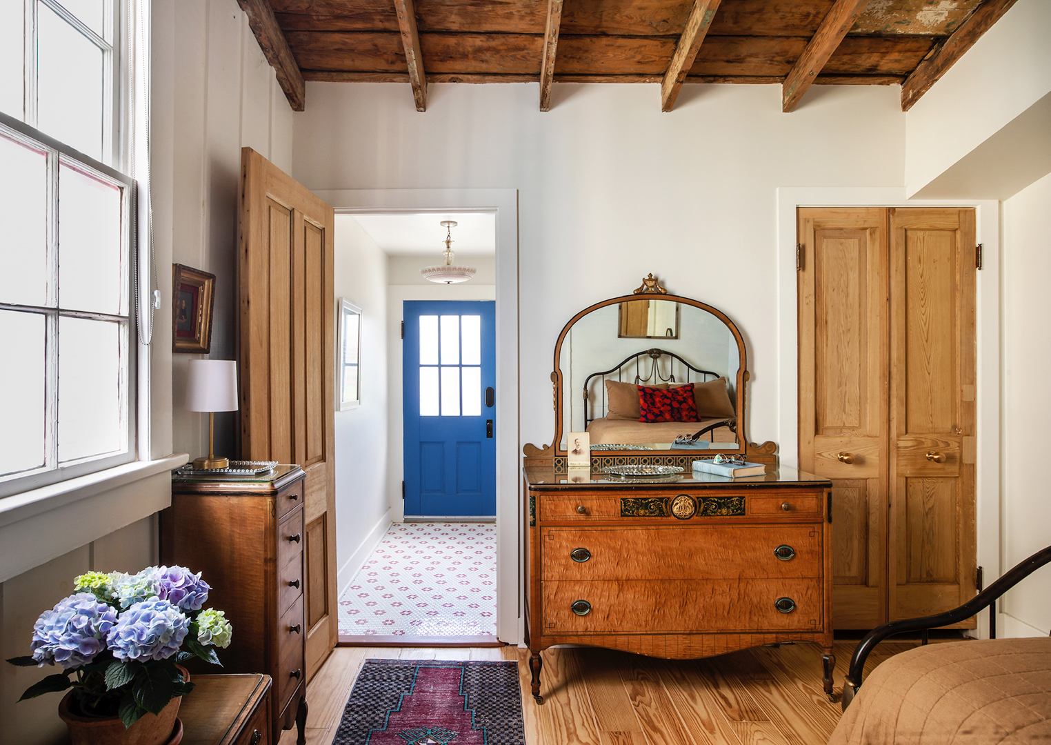 When Breeze Braunschweig’s neighbor listed his double shotgun house (a style that consists of two dwellings that share a central wall), she knew she’d have to act fast. A local developer had been buying up historic homes on her New Orleans street, tearing them down and building new rentals in their place, and she didn’t want this gem (built sometime between 1840 and 1870) to fall victim to a bulldozer. Braunschweig, a designer and contractor, and her husband, Kartik Ramachandran, who works in real estate and finance, had different plans: They wanted to infuse the worn-down home with oldness. Shortly after purchasing the property, the couple found themselves driving all over the southern U.S. in a sprinter van (usually with a 12-foot-long trailer attached to the hitch) picking up vintage tubs, sinks, cabinets, and appliances that most other renovators were happy to toss. “In the construction industry, there’s so much waste. I feel kind of sick when there is a dumpster in front of a house and everything’s being thrown into it,” says Braunschweig.