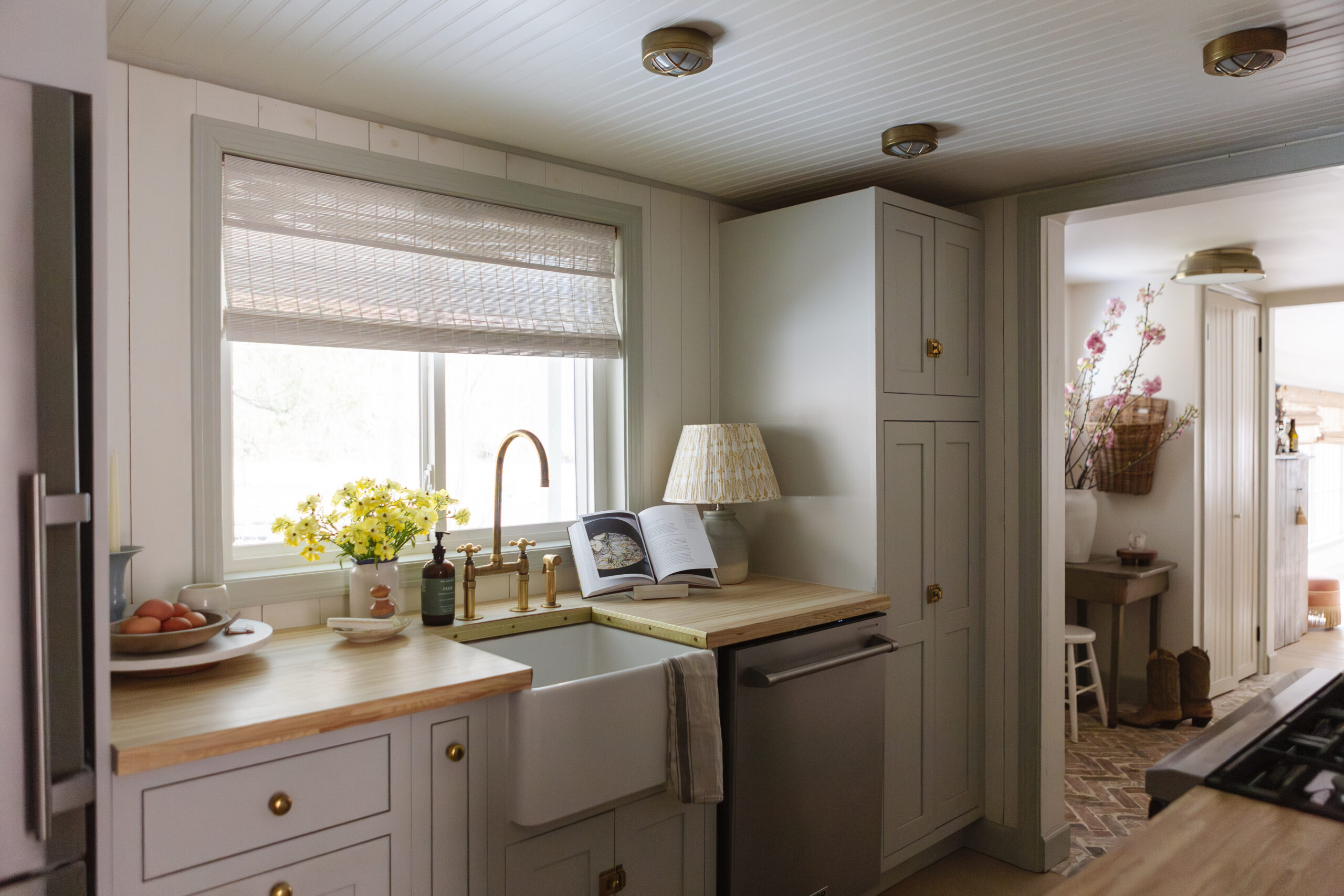 Why no backsplash tile, though? Because “at that point, painting with satin paint, it’s very easily wipeable,” she explains. She also thought tile would feel too cold in the cozy galley space.