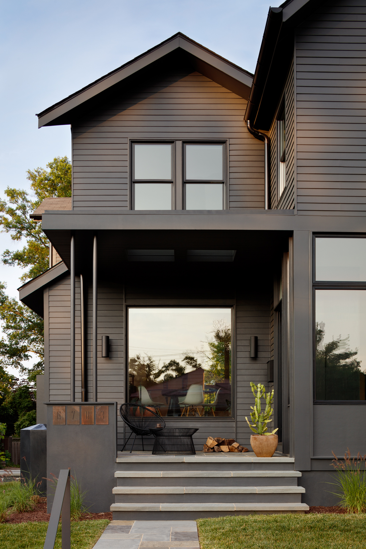 black house with large windows