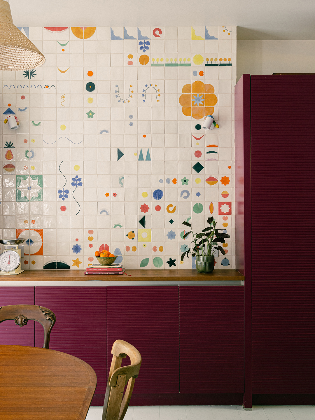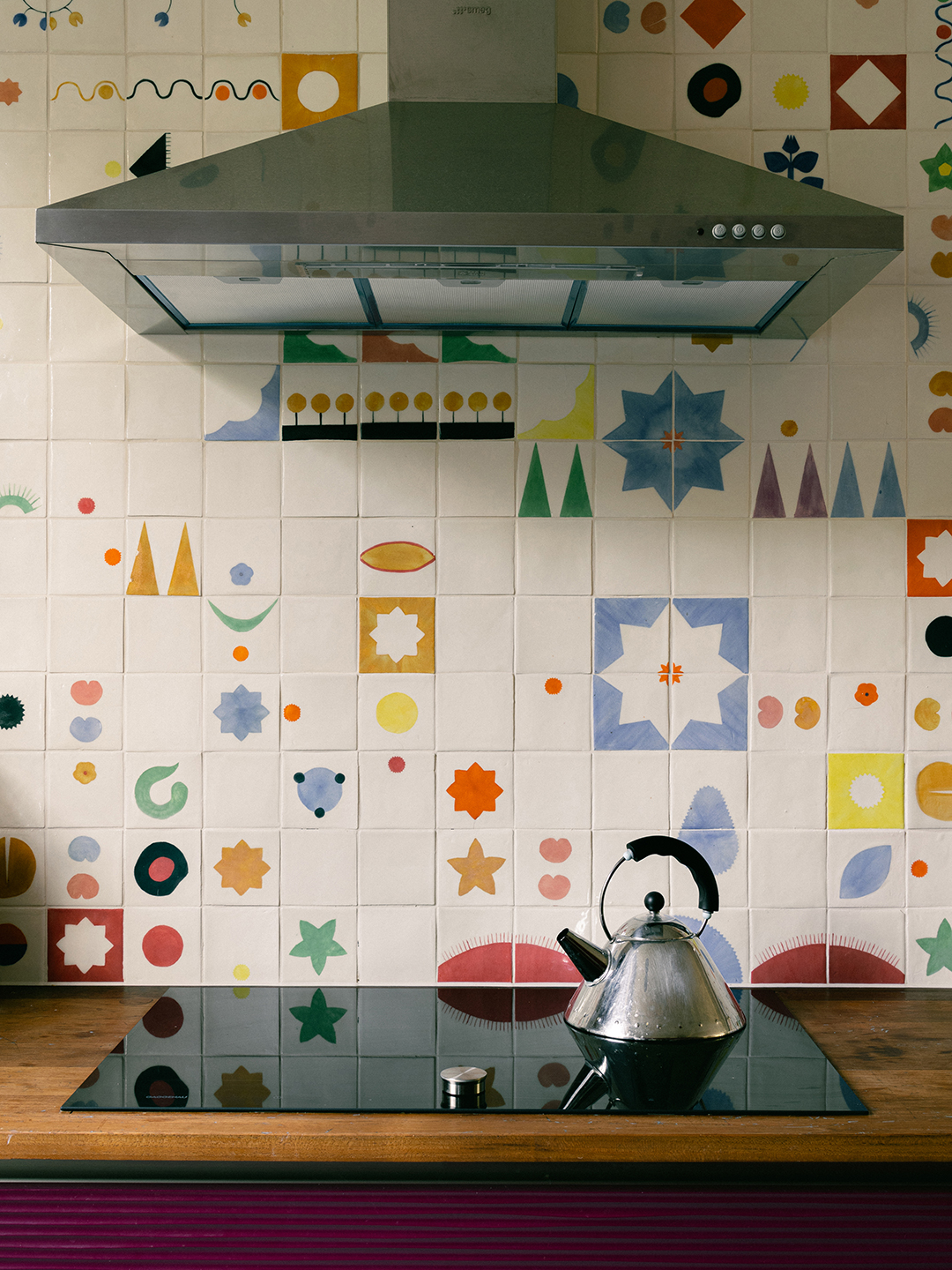 With Wood’s creative juices in full flow, she was inspired by a reference image of a space where every single wall tile was different. “I knew that if the idea was quirky and zany, then the client would gravitate to it,” she says. Cue a custom design by Charlotte Moore, an architect by day and a budding ceramicist by night. Moore’s concept was a distortion of pollen under the microscope in saturated color. She handmade and triple-glazed each of the 1,200 tiles. “It was a labor of love,” says Wood, who decided to really show off her work by opting for a smaller vent hood in order to maximize the wall space.