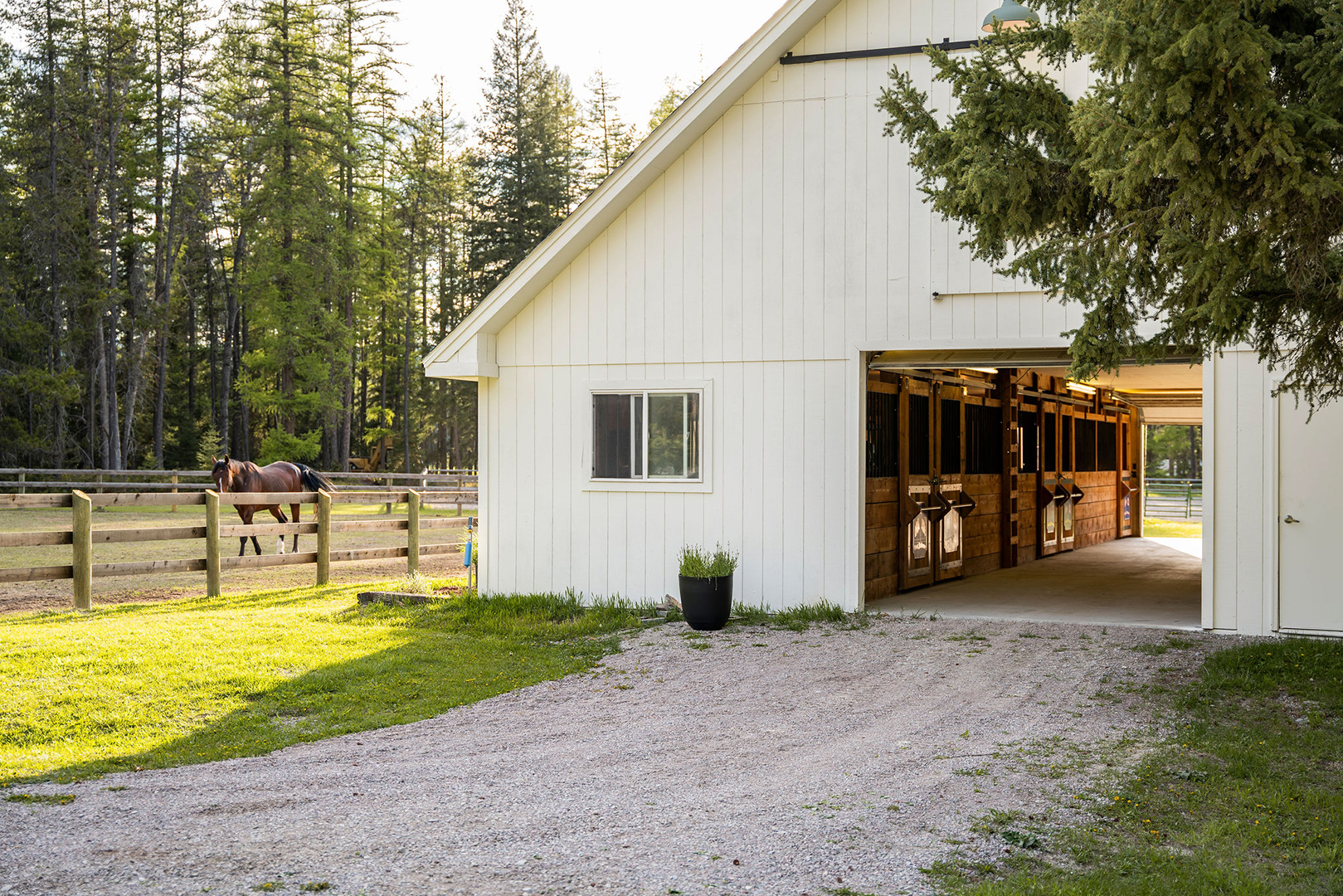 Despite the eight-stall horse barn located on the property, this wasn’t your typical farmhouse. The home itself had been built in 2004 but cheaply and confusingly done in a New England Colonial style—one of the reasons Samantha guesses it sat on the market for two years. The windows were missing trim, there wasn’t any hardware on the kitchen or bathroom vanity cabinets, and the floors were an orangey oak color. Luckily the couple, who have been developing and renovating homes in L.A. for the past seven or so years, were up for a challenging remodel (Jason not only works in the music business—he’s a licensed contractor in California). “We’ve bought a lot of ugly houses,” says Samantha with a laugh. Their goal was to make the space feel more like a working farmhouse—something she knows a lot about as an equestrian and having grown up visiting her grandmother in nearby Bigfork as a child—while also making it family-friendly.