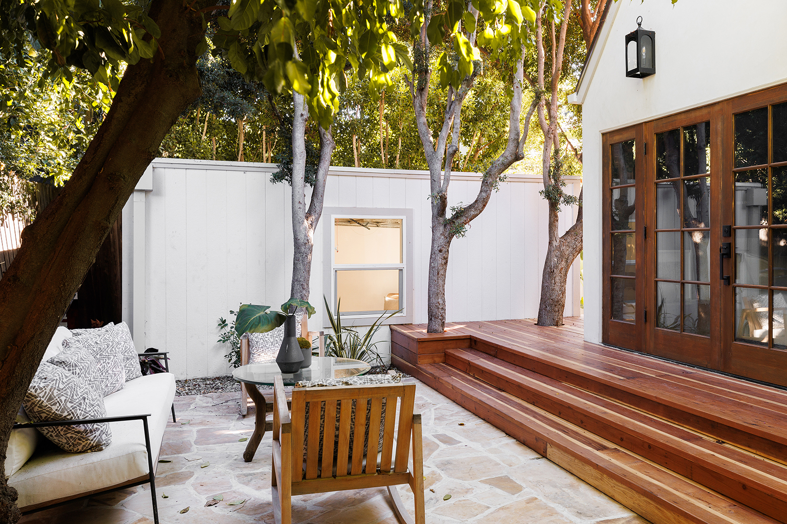 Bové wanted to pay homage to the trees in the backyard the same way he did the rest of the house. “They have a lot of history and a lot of permanence,” he says. That’s why it was decided to build the red oak deck around them, instead of ripping them out and replanting them in another area of the yard. Like the new vaulted ceiling in the bedroom, they appear to soar to the sky.