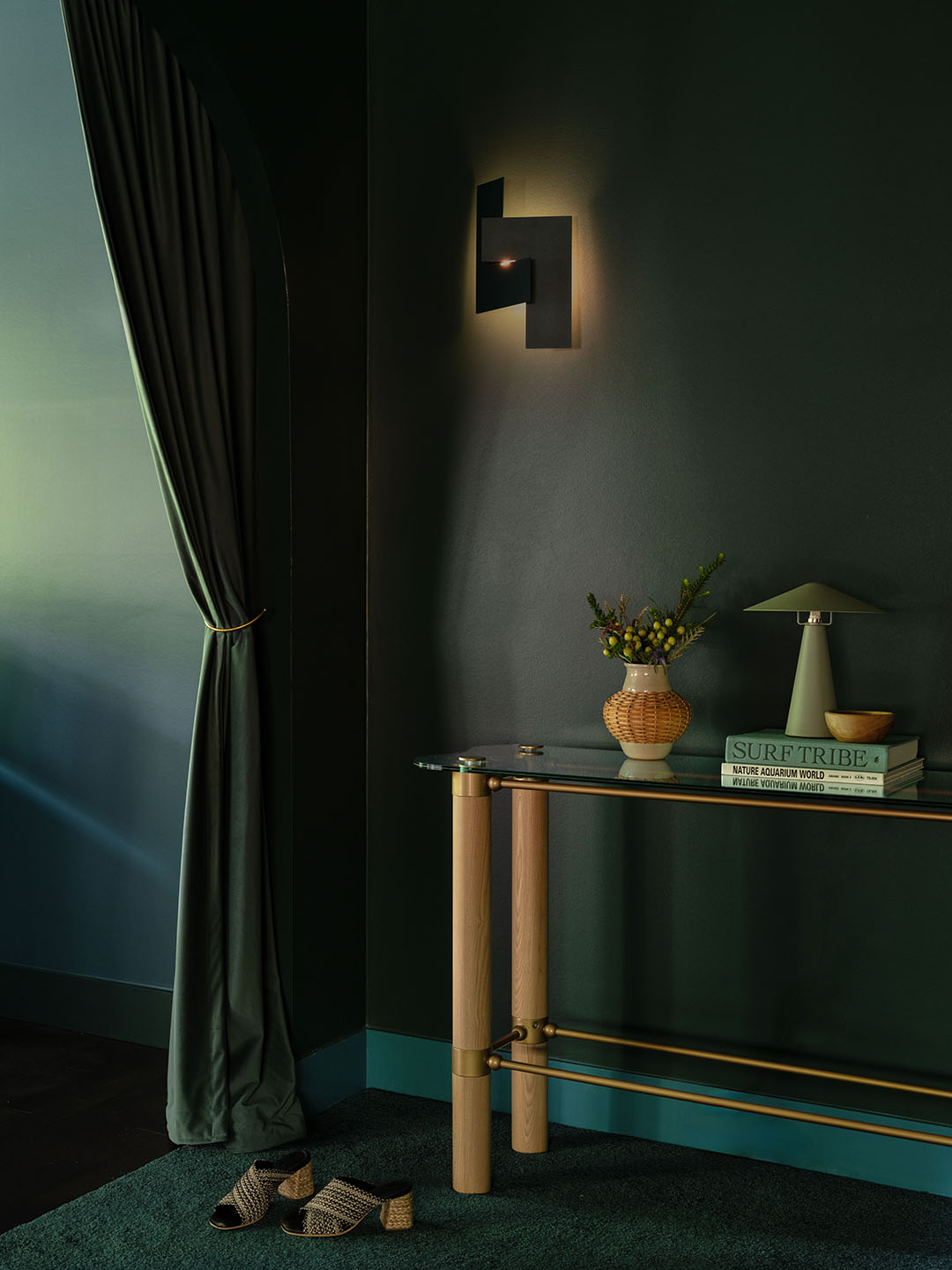 The designers had two rules to follow: no white walls and every detail had to echo the springs. Backdrop’s Sicily or Cyprus was their BFF in the entertaining area. When the light hits the glossy finish just right, the walls and ceilings look like ripples you’d see on a swimming hole’s surface. “Not only does the lacquered ceiling reflect light around the otherwise moody space, it also makes you feel like you’re underwater looking up,” says Rector. “We were a little nervous it would feel overwhelming, but once it all came together, it really gave each room its own unique story and mood.”