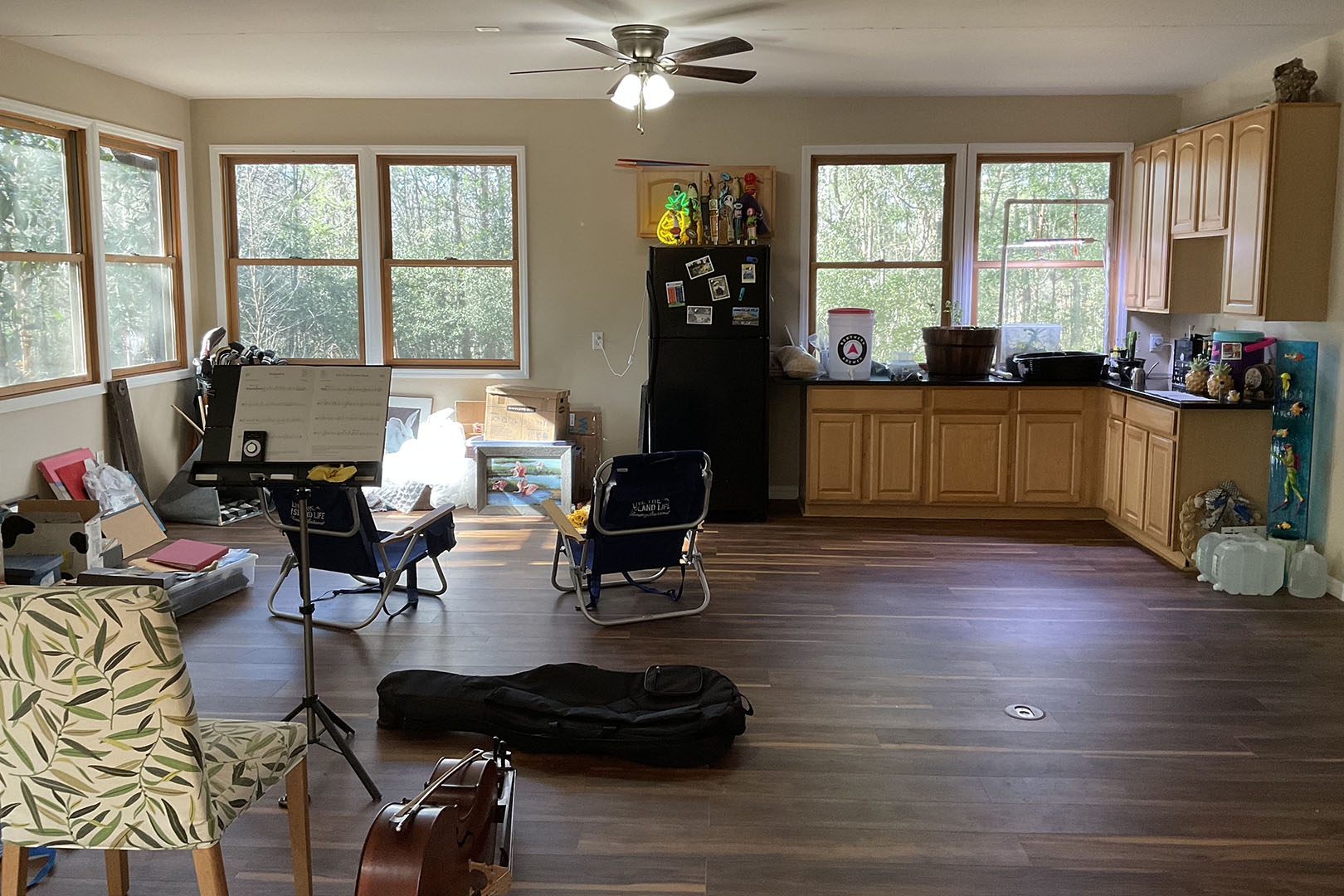 Their dream was to have it function as a Swiss Army room—part storage, part chill zone, part party central. They’d been playing around with layouts on their own but needed a designer’s eye to bring it all together, so that’s when they called in Chelsey Cox, one half of Gainesville-based Chinotto House. She dove into the project alongside the studio’s other half, Rachel Rector.