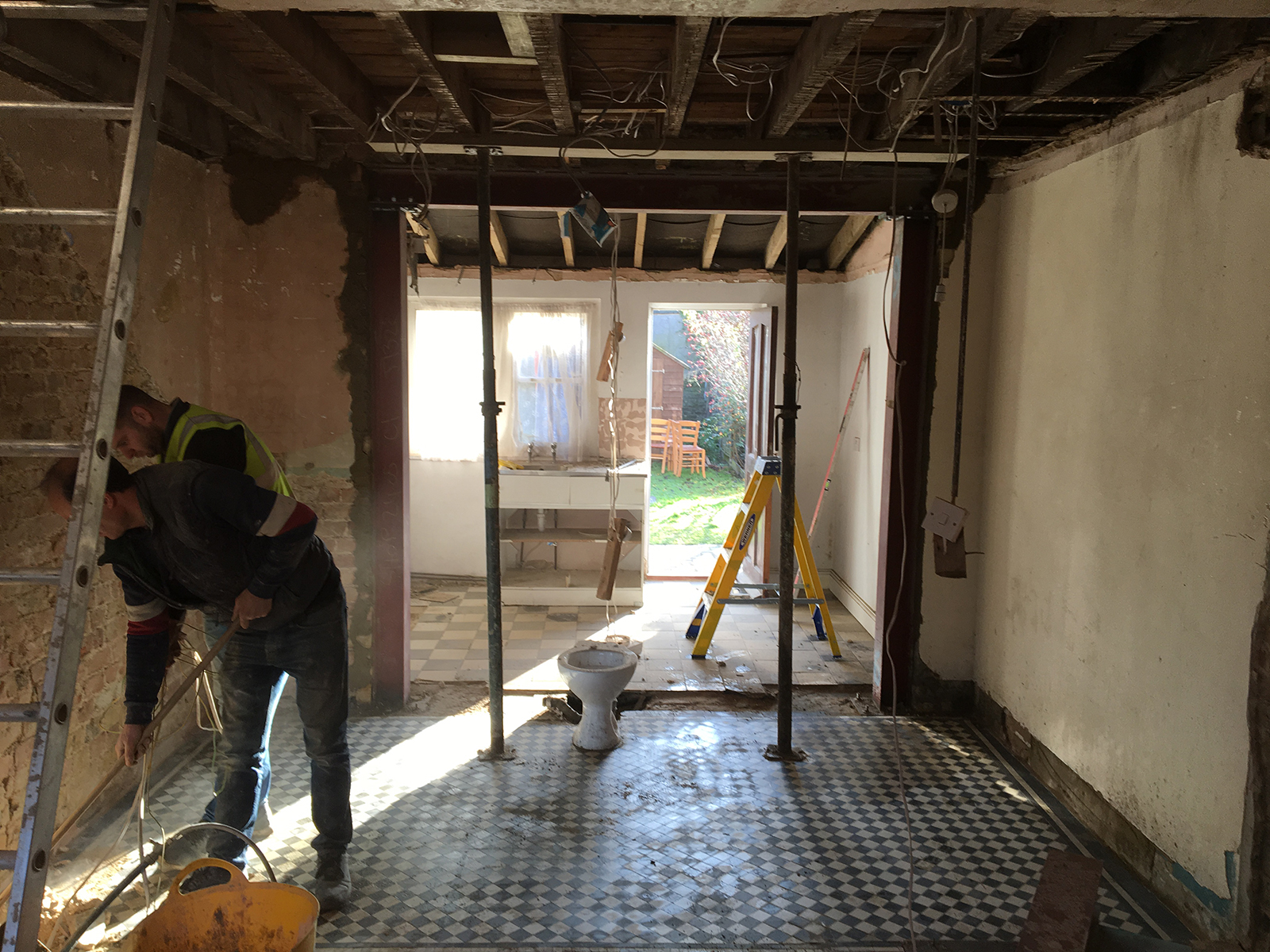 When we first viewed the house, the original black and white Victorian floor tile was covered up by an awkwardly located bathroom. The first move was to rip out the ground floor and restore the tile. It’s the focal point of the whole downstairs; it’s where our dining room table sits, between the kitchen and living room, and is the central social hub.