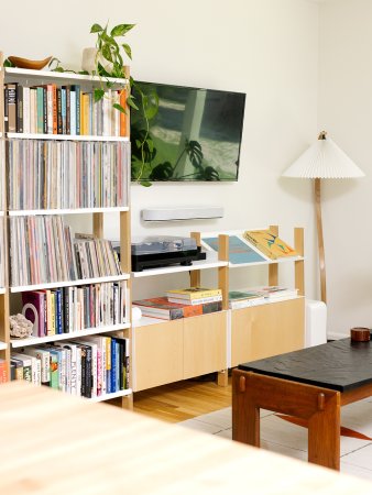 While the general size of the kitchen has stayed the same, Hommeboys created extra space by closing a narrow passageway next to the fridge. With a seamless U-shape layout, they were able to extend the countertop and cupboards to the left of the sink. The couple also designed all the new custom cabinets themselves, which allowed them to tighten up the usual gaps that result from stock or semi-custom millwork. “We’re able to really home in on the details, like how the doors perfectly line up,” says Mutter-Rottmayer.