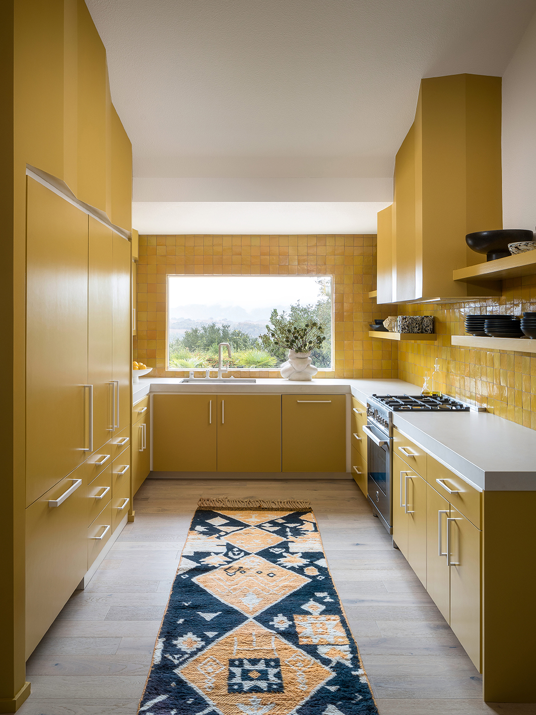 From Austin Carrier and Alex Mutter-Rottmayer’s very first meeting with their client, an artist and gallery owner living in Healdsburg, California, she was adamant about having a yellow kitchen. Actually, her exact words were “a really happy yellow kitchen.” Carrier and Mutter-Rottmayer, the married founders behind design firm Hommeboys Interiors, took the idea and ran with it as far as they could. “She was just thinking of yellow cabinets, but we were like, let’s drench it,” says Carrier.