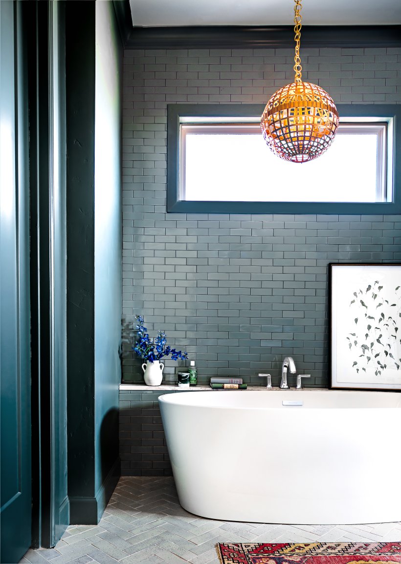 Glossy Tiles and a Lick of Teal Paint Give This Bathroom a Dose of Attitude