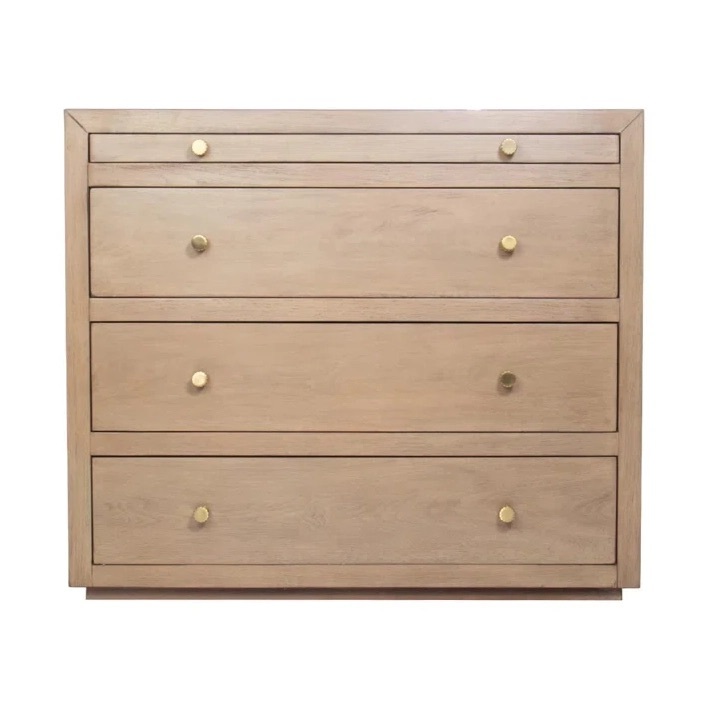 Scalloping has taken over interiors, but this textured take—with warm wood tones and subtle brass accents—feels refreshingly 2025. Add in the pullout tray, and you have peak bedside functionality wrapped in timeless charm.