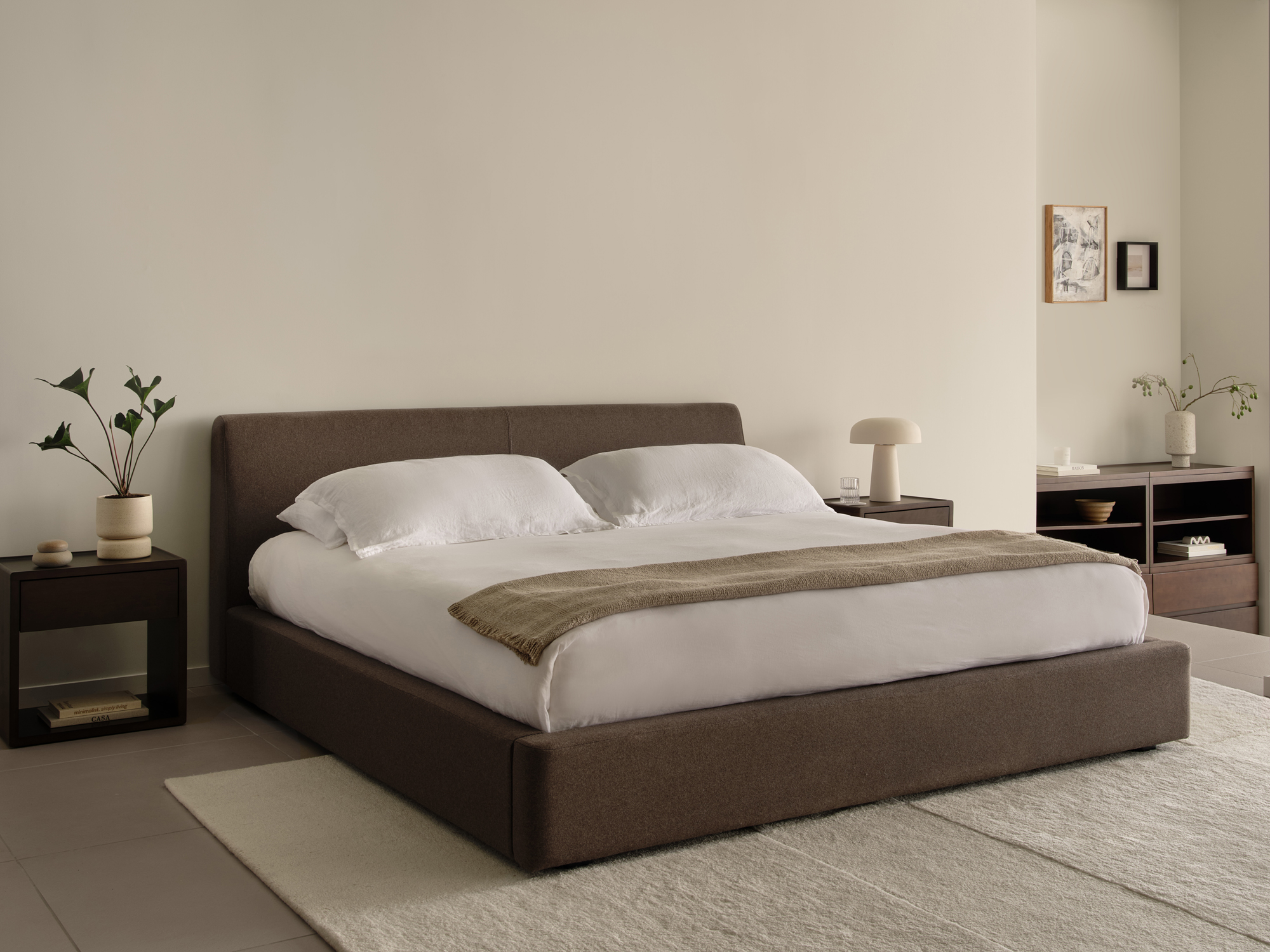 Luxe lovers, take note: Fully upholstered in your choice of performance linen or Italian wool felt (each fabrication available in four colors), this sophisticated bed provides an enveloping experience.