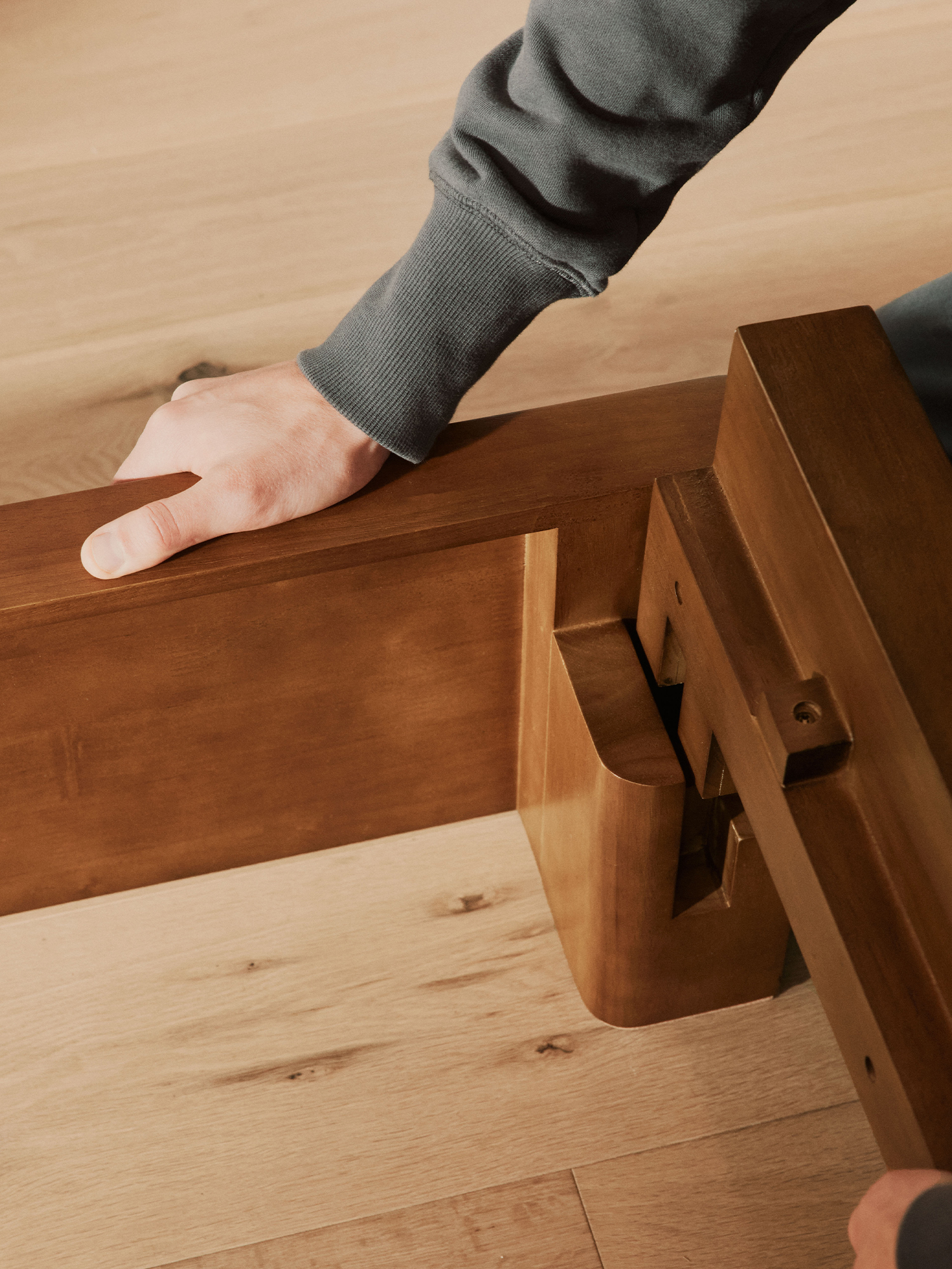 Imagine a solid wood bed that begins as a minimalist platform in your studio, but with the addition of a pillow-inspired upholstered headboard in performance linen or Italian wool felt, shifts from a first-apartment find to a forever-home fixture. Or a credenza that starts as a sleek media console and transitions into long, lean storage in the bedroom, when you move to a bigger place.
