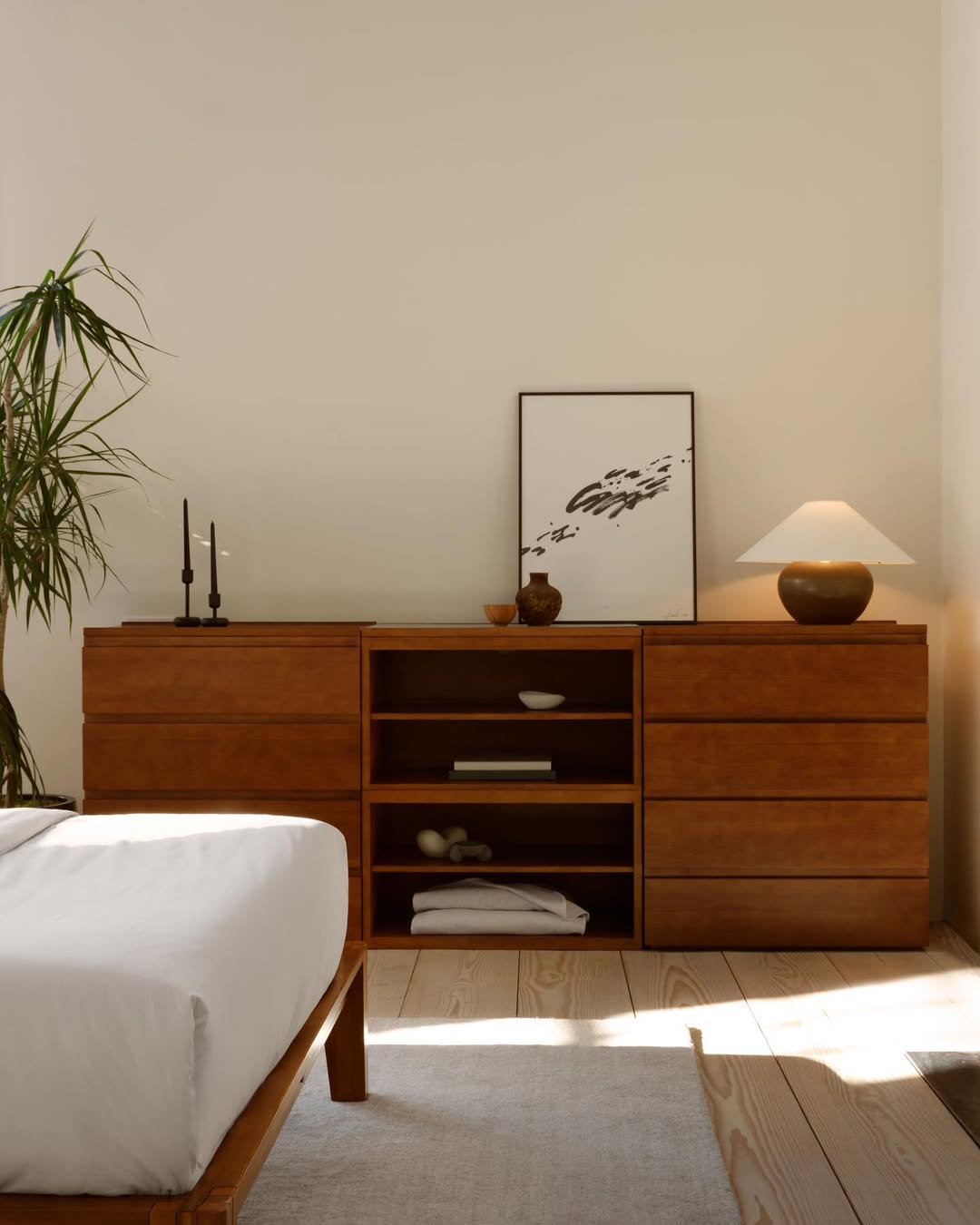 Whether you’re looking for a low-profile storage piece, a modern dresser, or a slim spot to display extra items, the Nest Credenza’s innovative modular design offers endless possibilities. Simply add or remove drawers or shelves for complete customization (hint: you can also add felt liners for soft-touch shelf interiors and cozy top surfaces). Here are three of our favorite configurations for the bedroom: