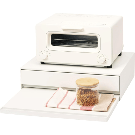 This countertop addition practically creates more storage out of thin air. The steel piece can support a 17-pound appliance on top and incorporates a drawer and hidden shelf underneath.