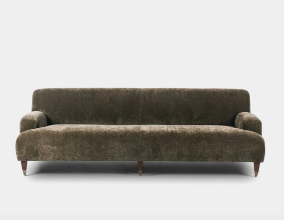 If you’re constantly rearranging your living room, the Kent sofa is for you. The piece is set on caster wheels. “If you were to put that sofa on standard pointed mid-century legs, it would look like one we’ve seen 1,000 times. The casters makes it upscale,” shares Lewis.