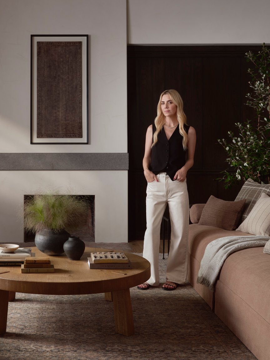 “I think this would be perfect in a living room or bedroom,” she tells Domino. “In terms of styling, warm neutrals can help lay the foundation for the color story in a room, and you can mix in other complementary tones with furniture and decor.”