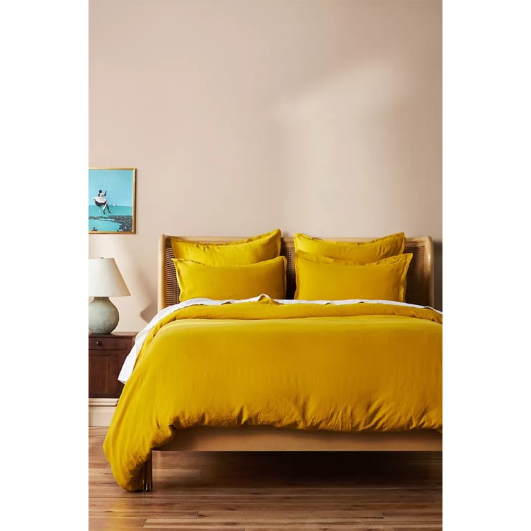 We love to tap Anthropologie’s bedding for a pop of color; this goldenrod duvet, for instance, is the perfect transition piece to take your linens from summer to fall. The richly dyed European flax linen is light and soft. To top it all off, add a decorative pillow—you already know we’re Team Gingham forever, and the lattice border adds the sweetest flair. Plus it’s not as delicate as it looks. One shopper shares that “after a family member spilled chocolate ice cream on the cover, it washed up beautifully.”