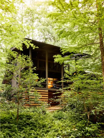 At $30 apiece, Claire Thomas would have maxed out the budget for her Big Bear, California, cabin had she decided to cover the kitchen in this geometric tile. The idea for the artful backdrop actually came from a serendipitous miscalculation. She overestimated what was needed for the fireplace platform, so she relegated the leftovers to the area behind the cooktop, while a simple white subway option fills out the rest of the room.