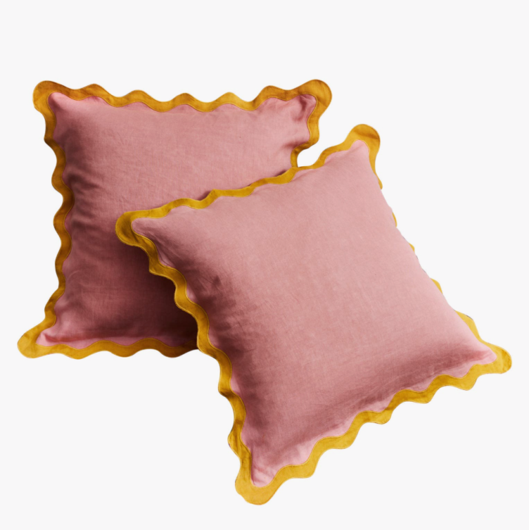 The only trend more popular than Barbiecore is squiggles, and while Bed Threads’s linen Euro shams embrace both, they’re somehow still timeless.