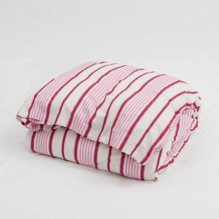 A preppy touch like stripes is the perfect way to tone down a kitschy, over-the-top Barbiecore vibe. A little beachy, a little playful, and all you need to pack a punch in a bedroom.