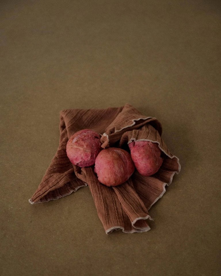 “We have the same approach and process for the home collection as we do with the clothes when it comes to fabrics, dyeing, and production,” she says. “Many of the fabrics are ones we’ve worked with for the clothes.” Their personal favorites from the collection include the Shell long roll pillow (“For the way it hugs and holds the body”), the textured crinkle linen Shoal tea towel, and the Shoal tablecloth.