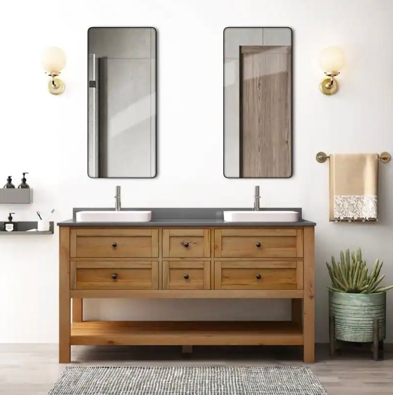 Double Semi Recessed Vanity in Reclaimed Wood, Home Depot