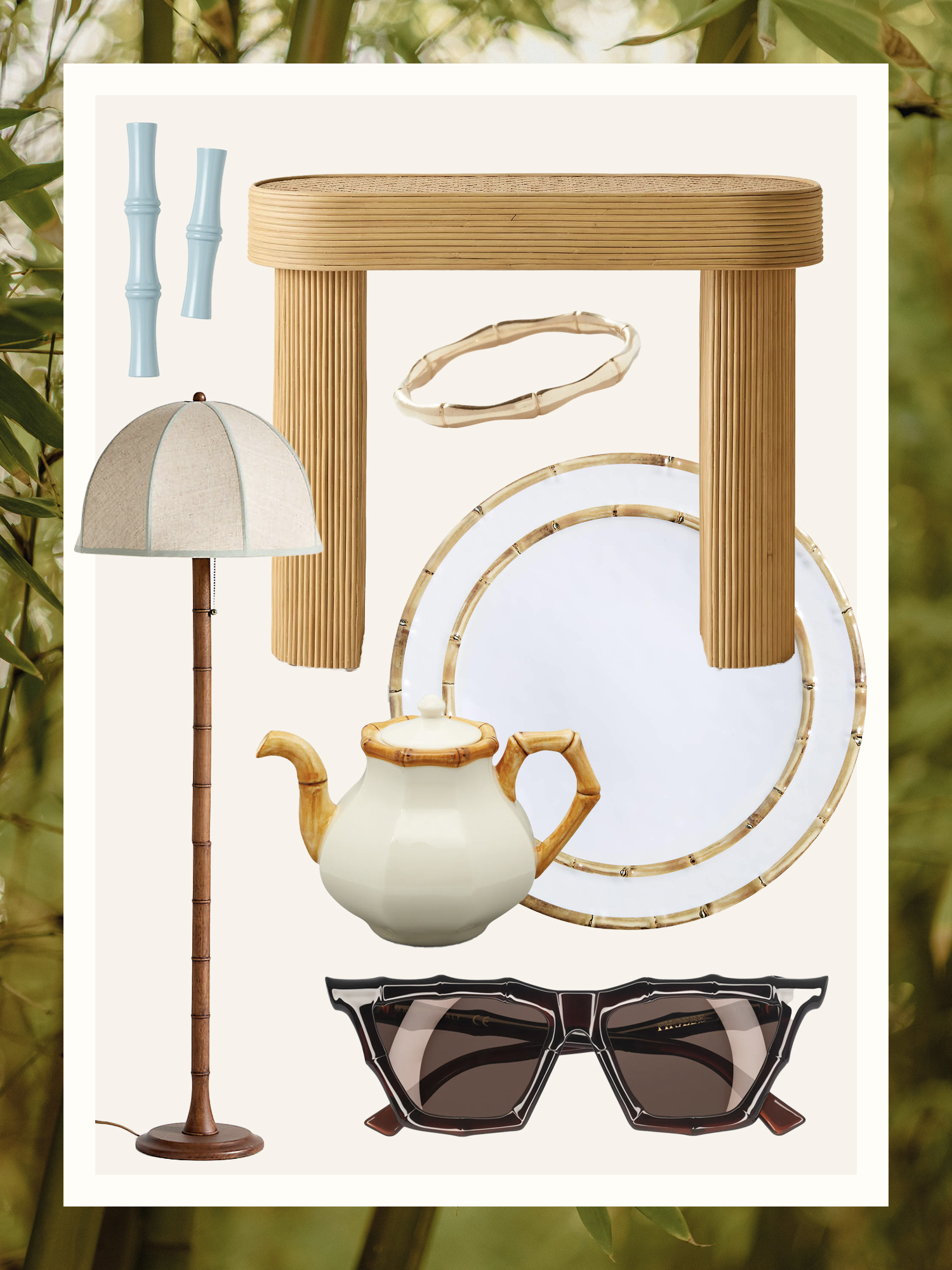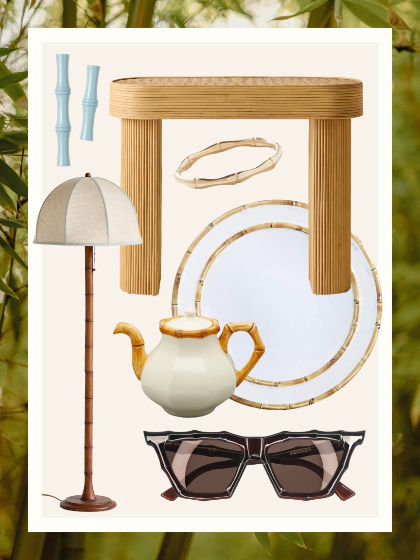 Bamboo was the word on the street this year at Salone del Mobile, the design world’s annual rendezvous in Milan for new products, exhibitions, and installations. Not as a component of fabric or sheets, which has felt like the use du jour, but the plant’s organic knobby form in all its glory. Just one example: Gucci’s presentation was focused entirely on the sustainable plant, which highlighted several designers working with it in novel ways. Serena & Lily’s newest arrivals included faux detailing in the Ravello collection, designer Jake Arnold added touches to his latest Crate & Barrel release, and we’ve spotted bamboo-shaped taper candles, table legs, and even drapery rings out in the wild. Whether the material or motif, bamboo has been increasingly employed in furniture, decor, and tabletop lately—not to mention across fashion. See our picks of the moment.