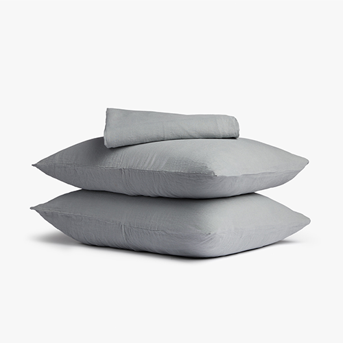 Parachute’s most recent drop, slate blue, is an unexpected but refreshing fall hue inspired by the California coast. Less blue and more of a pale gray, the linen offering is an exclusive collaboration with Nordstrom. We’d go all in and bundle the duvet cover and sheets together for a monochromatic look.