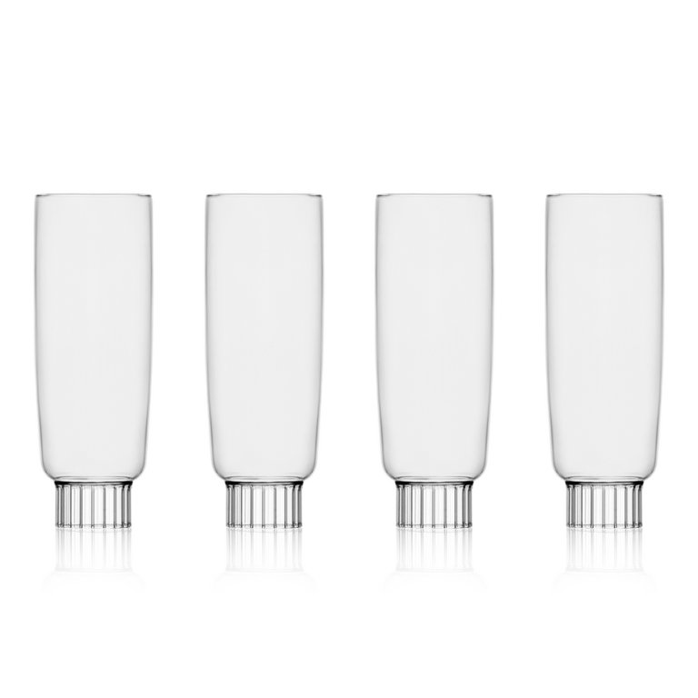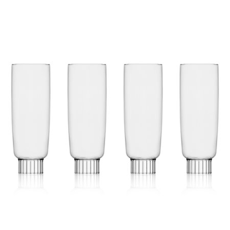 We could have called this the unique bunch but, really, they’re all stemless options with good details. Low bases with a fun factor abound from Sprezz, Iittala, and even Wayfair. There’s a touch of color from designer Nason Moretti and Kartell, and handcrafted recycled-glass flutes made in Morocco.