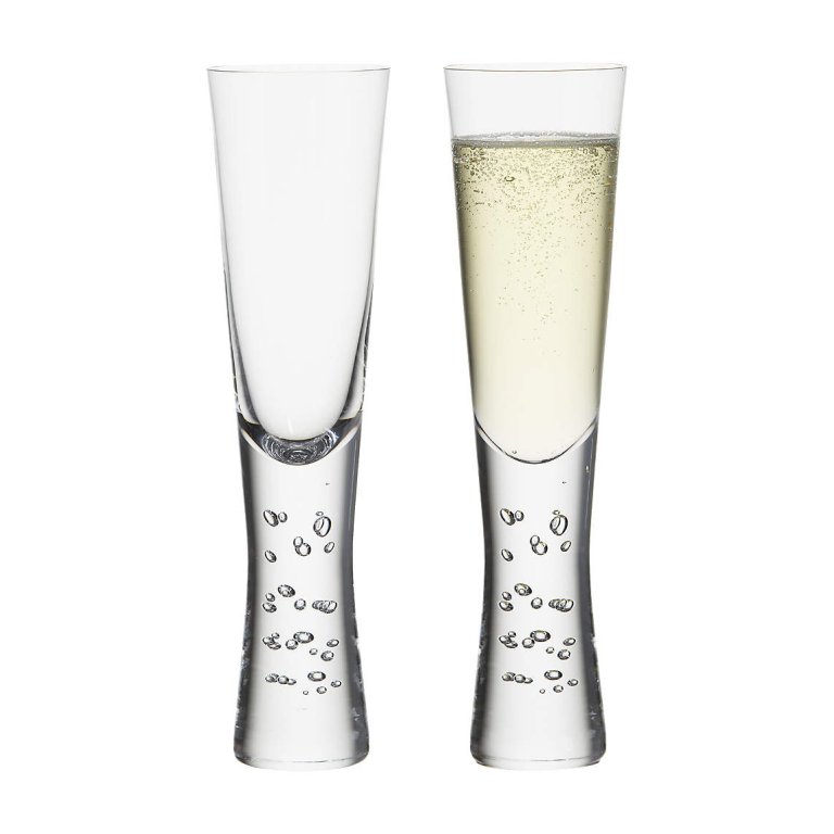 The most traditional of this bunch, tulip-shaped sparkling wineglasses mimic white wine glasses more than flutes. They’re well suited for getting your nose in the bowl to sniff all of those almond, floral, and toasty notes that champagne is so well known for. Glasvin’s version has a large base that’s good for stability (the brand is ubiquitous at restaurants for this reason), and Riedel’s Veloce series has chic extra-long stems. If you’re in need of an affordable option, LSA should be your go-to.