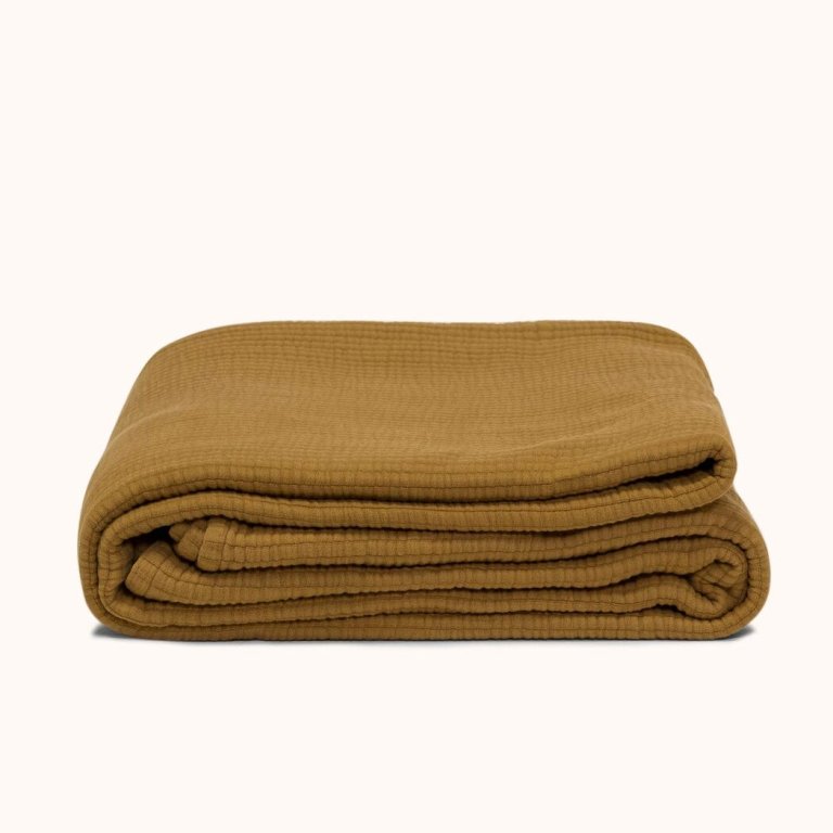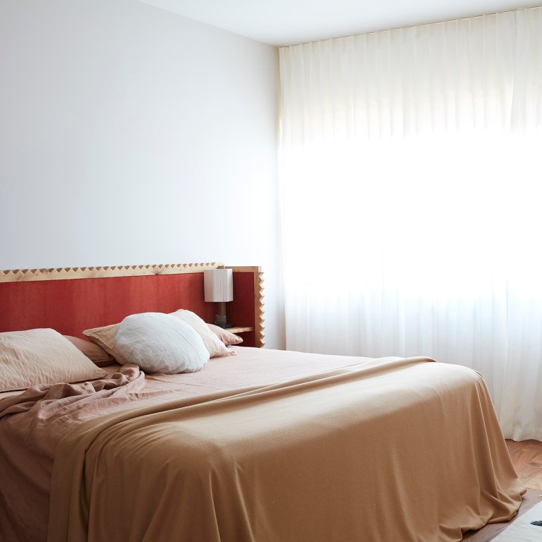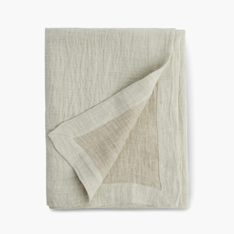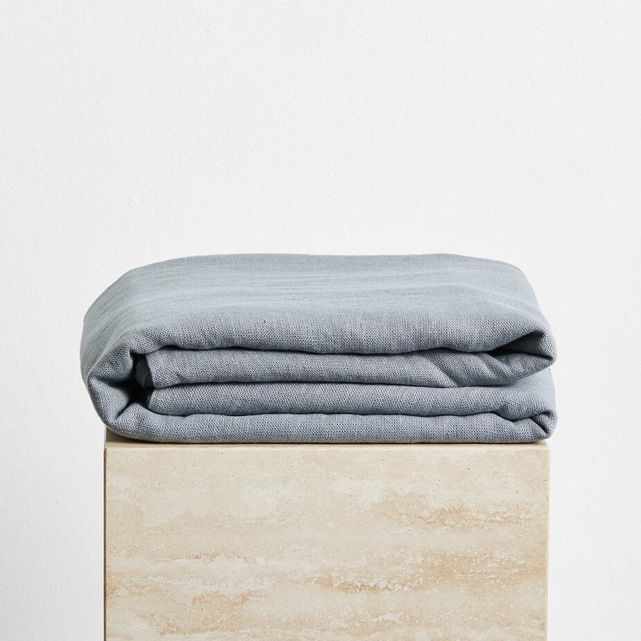 If you’re worried about stepping (or potentially slipping) on the top layer, simply tuck part of the fabric in, suggests designer Colin King. “Sometimes if there is a footboard or a really beautiful platform that I want to feature, I’ll tuck the cover under the end of the mattress and let the sides drape over,” he shares. Another thing you shouldn’t have to worry about? Wrinkles. The bedding collection he designed in collaboration with Cultiver is meant to be heavy enough to combat unwanted folds. “Pulled taught even over a duvet, the bedcover sits quite flat and is forgiving when it comes to creases,” he notes.