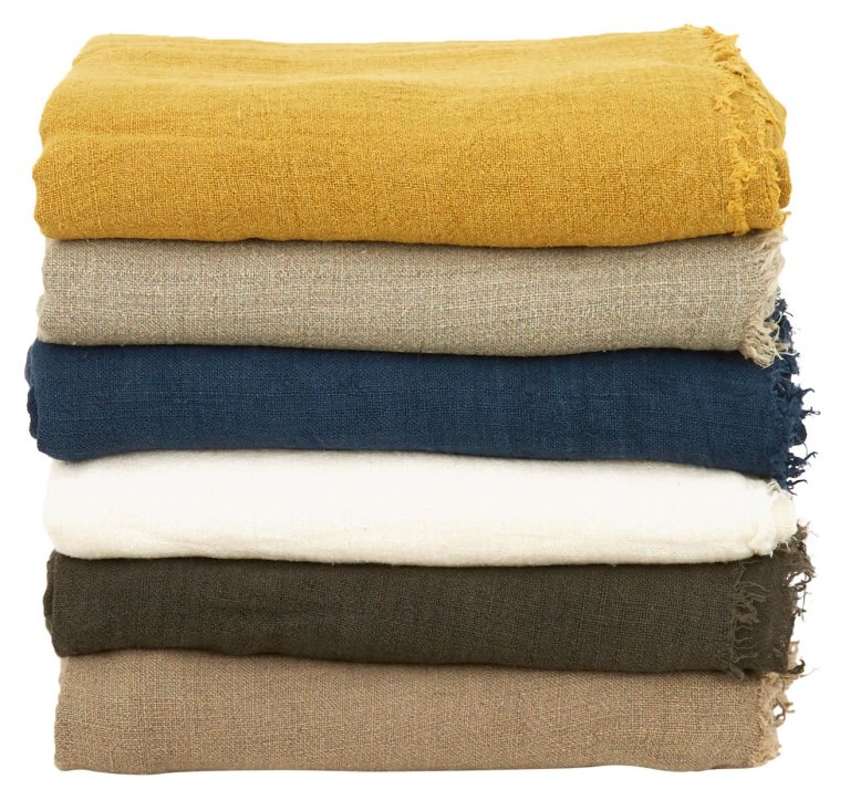 When it comes to shopping for the right coverlet, there’s no shortage of options out there. Hoffman uses one by Ruemmler for winter: “It is a really nice raw canvas that softens over time and is very forgiving with wrinkles.” In summer, she pulls out her gauzier Jayson Home bed cover, which comes in a range of earth tones.
