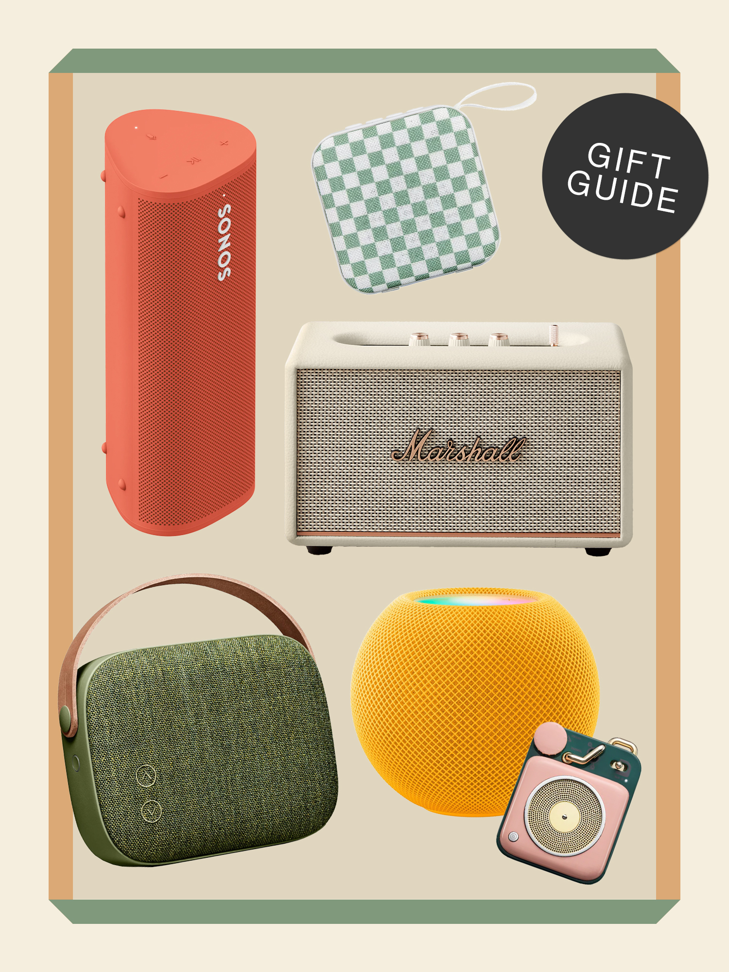 There probably isn’t a more recognizable brand name when it comes to amplifying music. The cream vegan leather case is accentuated with brass controls and buttons for an elevated look that the brand defines as its most discrete. “We have so many Bluetooth speakers, but this one is worthy of display 24-7!” one shopper writes.