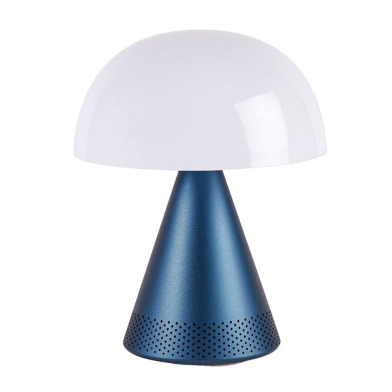 A lamp and speaker in one. This cord-free cutie brings ambient lighting and tunes to your next outdoor dinner party. The mushroomlike silhouette delivers 360 degrees of sound and nine adjustable LED color ranges you can dim via touch.